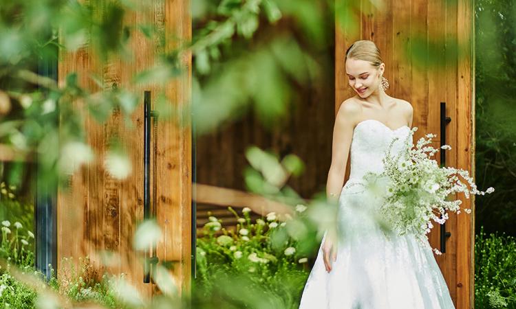 風にそよぐ葉の音や小鳥のさえずりも聞こえてきそうなガーデンに建つ『森の教会』。自然光と緑が祝福する挙式が叶います