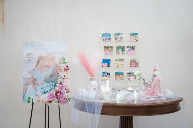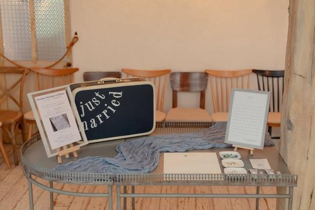 布の水色とウェルカムボードとの相性もばっちりで、うまく世界観が表現されています。