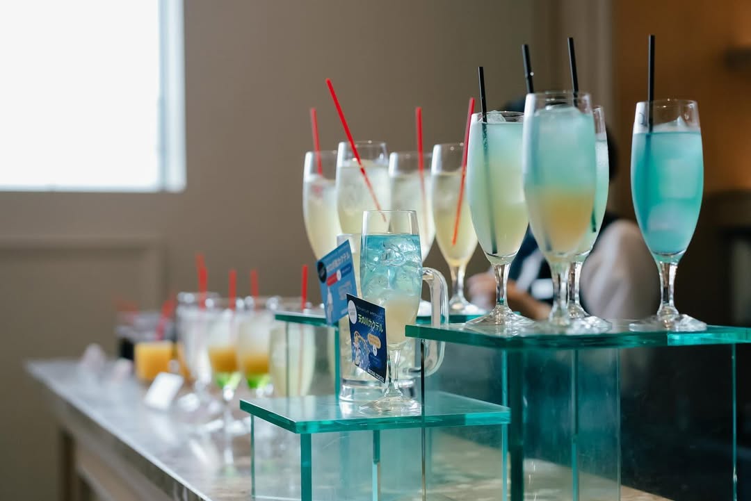 オリジナルカクテル𓂃 𓈒𓏸 アニヴェルセルのウェルカムパーティでは、 軽食とドリンクを出してもらえます。 私達はプラチナプランを選んで、 オリジナルカクテルを作りました🍸 お互いの自己紹介的なカクテルにしようということで、 新郎はサウナ好き、 私は七夕生まれ&セーラームーン好きを アピールした自己主張強めなカクテルができました🌙 オロポってできますか?ってクセ強な質問にも、 こういうのだったらできるかも!と 一緒に考えてくれたプランナーさんには 本当に感謝です🥲💕 . ポップはセリアのホワイトカードに 二つのデザインを上下並べて印刷✌️ オロポはそれっぽく見えるように、 ジョッキに貼り付けて貰いました🧖 プランナーさんのアイデアすごーい👏💕