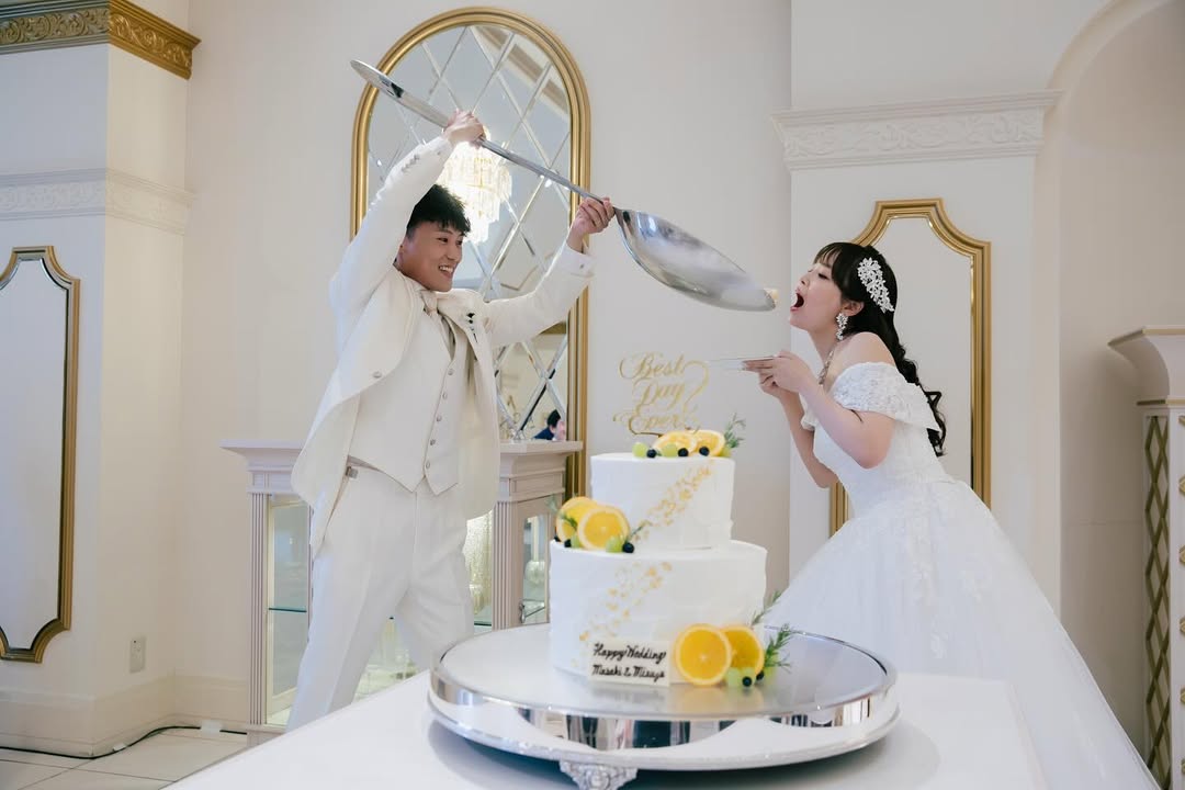 ここでご紹介している内容は結婚式当時のものです。現在は変更されたもの(設備や装飾など)や対応できないもの(料理、演出など)がございますので、ご留意ください。