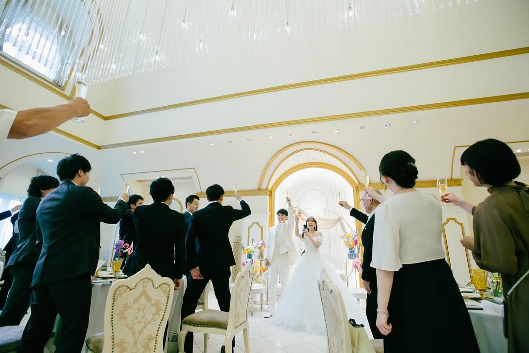 乾杯𓂃 𓈒𓏸 . 新郎の乾杯、元気良いね😂 BGM:WANIMA ともに