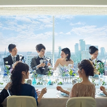 ホテル内の数あるバンケットのなかでも、少人数にぴったりのアットホームな会場『ブルー』。館内チャペルと同じフロアに位置しているので、移動が少ない点も魅力的。窓に広がる眺望を楽しみながら、プライベート感あふれる時間を過ごせます。