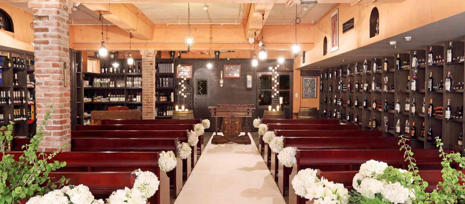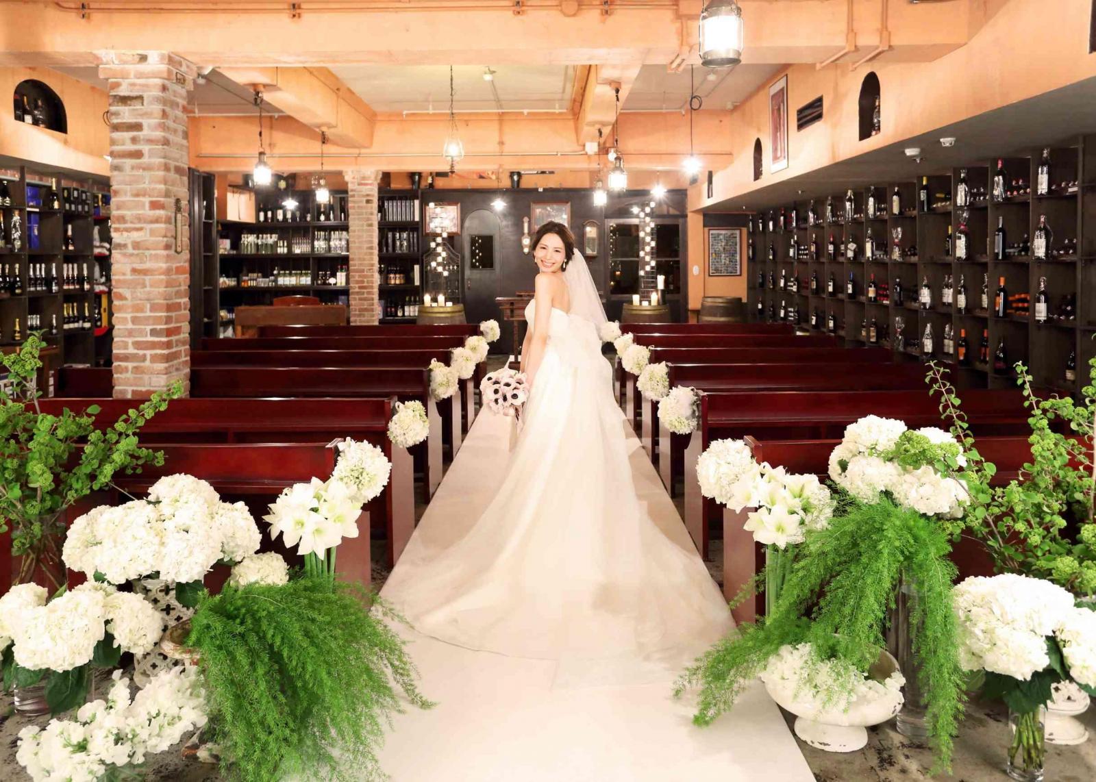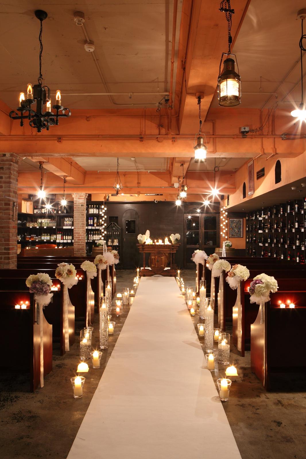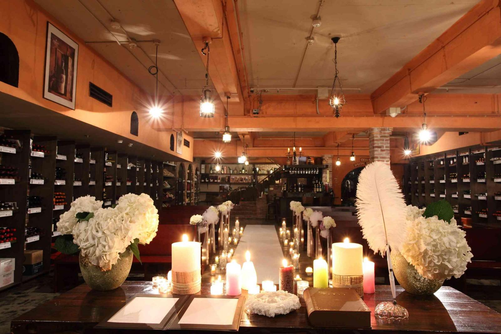 地下にあるワインセラーにキャンドルを灯して行うロマンティックな儀式が人気。100種類以上のイタリアンワインが揃うこのスペースで、ジャズの演奏の中で行う人前式も人気です。
