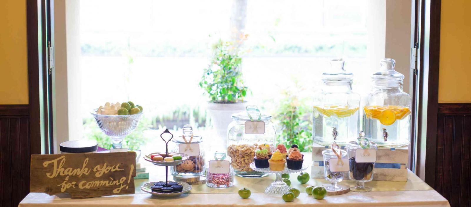 本格ピザ釜で焼かれた出来立てのピザをおふたりからゲストにお届けしたり、テーブル対抗の危機ワインゲームなどもパティ―を彩ります!専属パティシエのデザートビュッフェは老若男女問わず人気です!