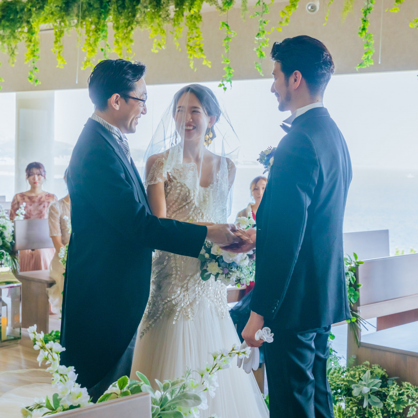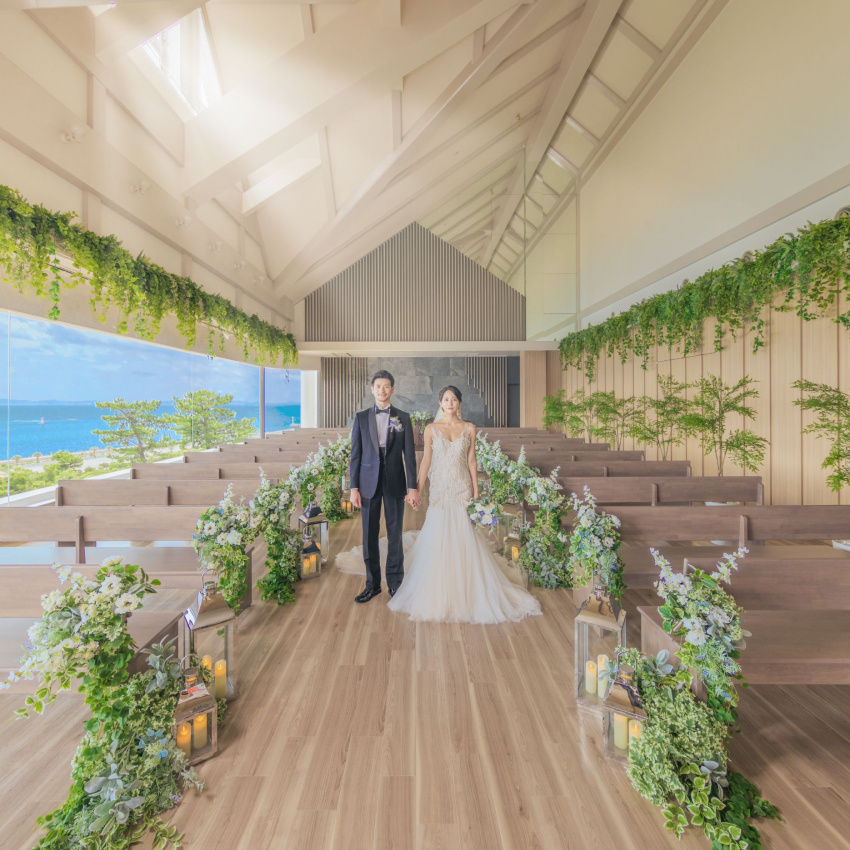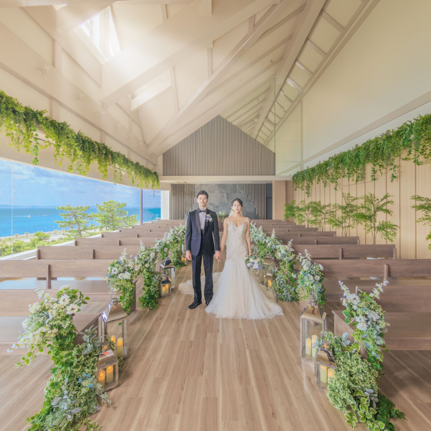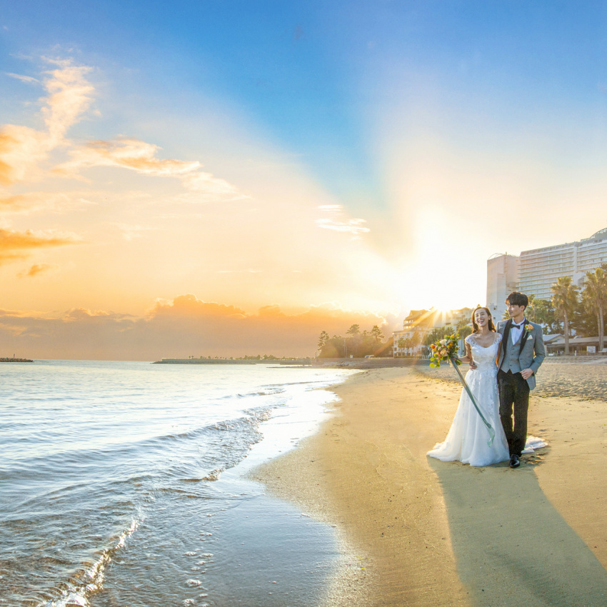 館内どこからでも見渡せるオーシャンビューはまるで海外リゾートのよう。大きな窓から海が広がるチャペルでの撮影はもちろん、目の前のビーチでの撮影も人気!写真撮影+家族での食事会+宿泊、といったスタイルも◎