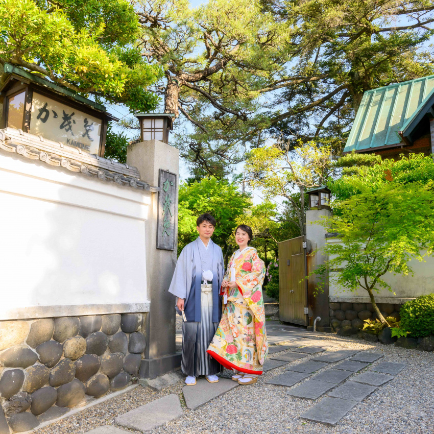 名古屋の日本料理の伝統を受け継ぐ名店として名を馳せる、料亭『か茂免』。1000坪の広大な敷地に広がる美しい日本庭園は、全室から望むことができます。職人の技が光る華やかな高級日本料理と老舗料亭らしいおもてなしは、少人数婚にもぴったりです。
