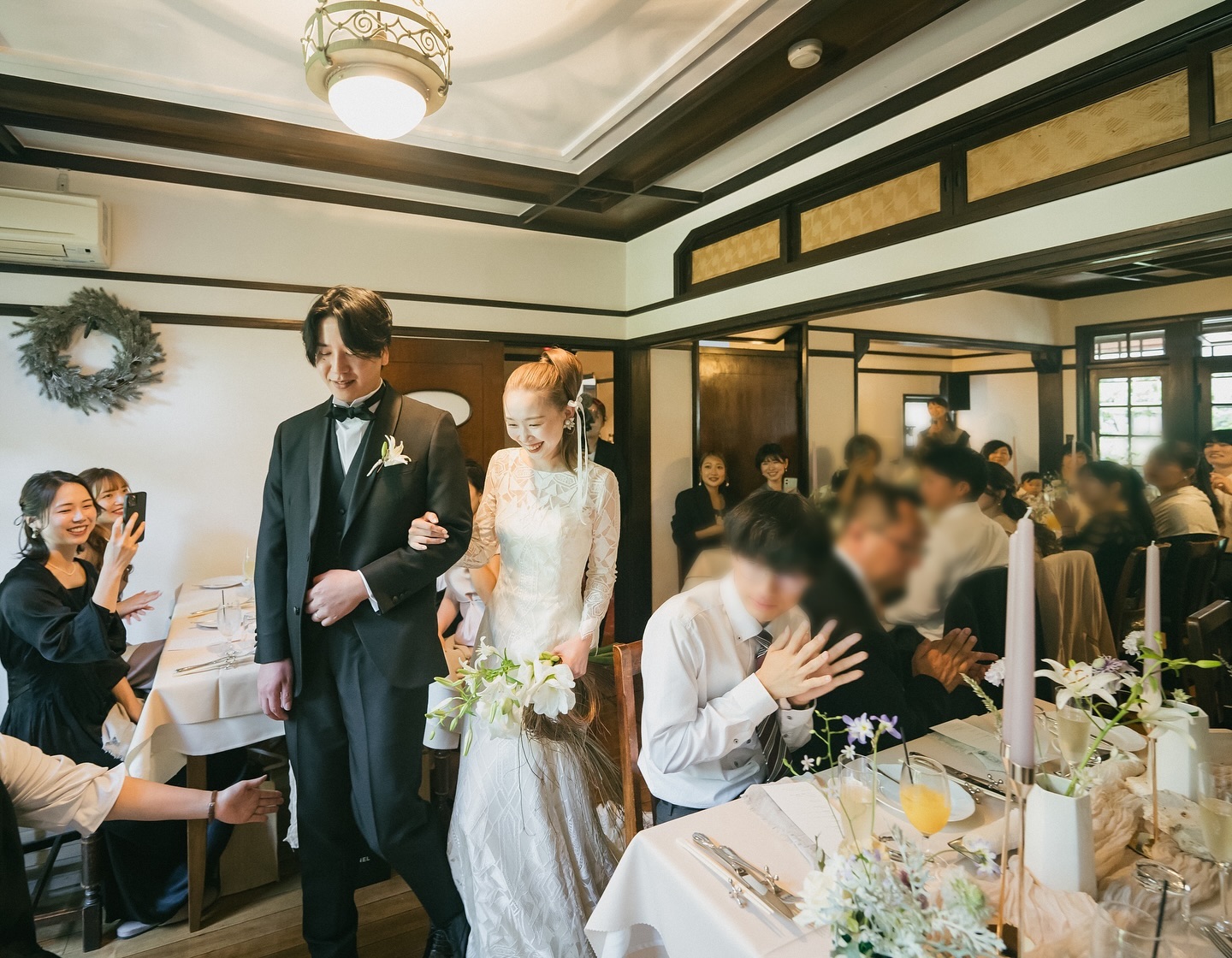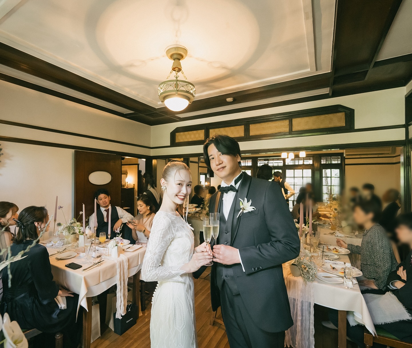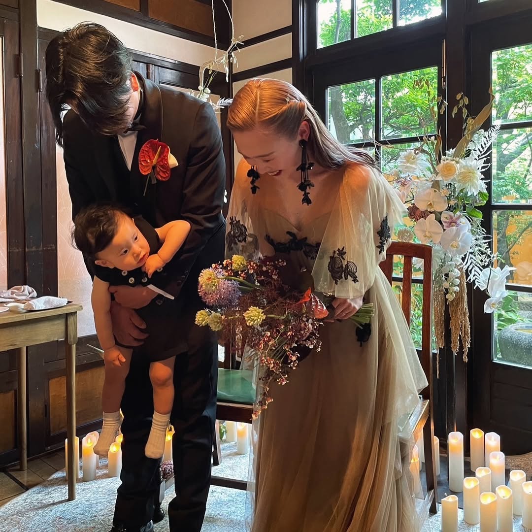 ここでご紹介している内容は結婚式当時のものです。現在は変更されたもの(設備や装飾など)や対応できないもの(料理、演出など)がございますので、ご留意ください。