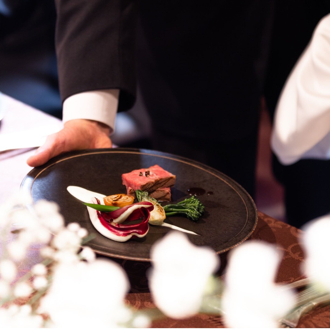 本格フレンチや料理長が考案した『ジャポネフレンチ』など、多彩な5つのコースを提案。参列するゲストの顔ぶれに合わせてコースをイチから作ることも可能です。素材の良さを活かした味わいはもちろん、美しい盛り付けも魅力的な逸品が揃います。