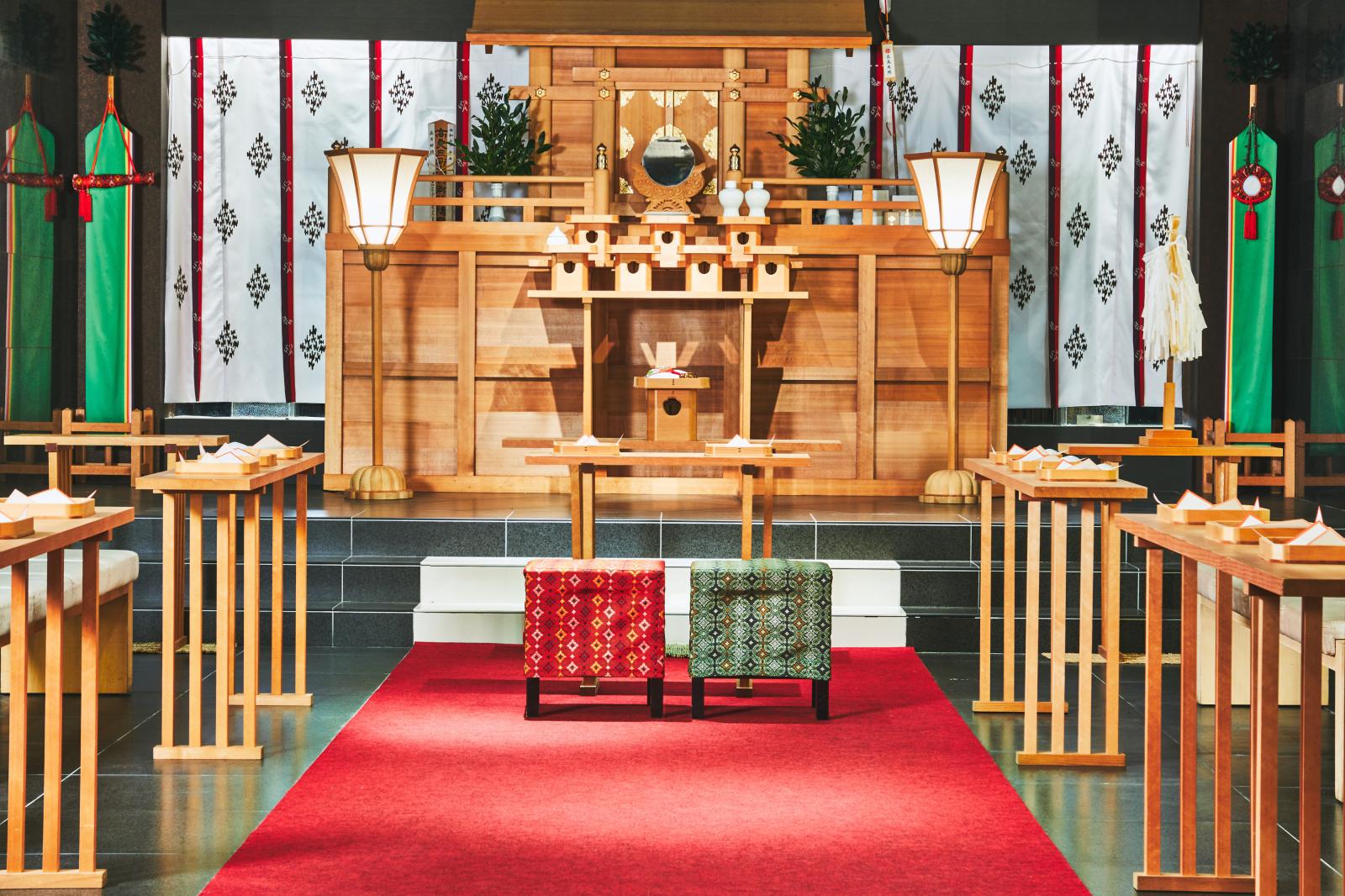 幼い頃から見守ってくれたご親族を前に「高良大社」の神に誓う永遠の愛