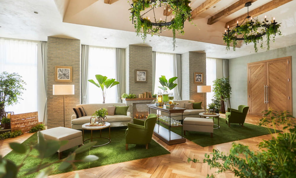ガーデンのように緑あふれる寛ぎ空間でゲストをおもてなし。