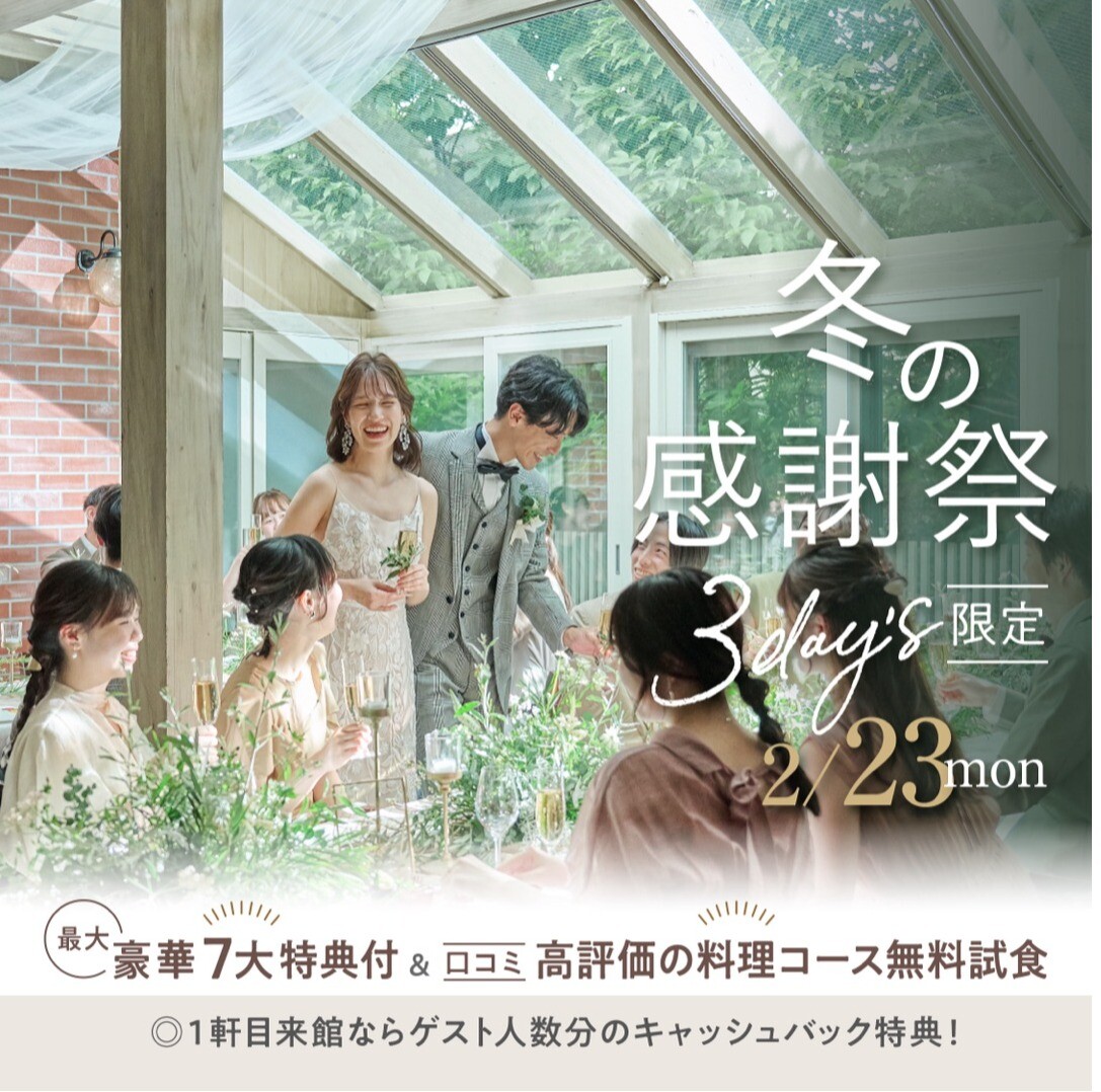 ★1月の来館が当館最大お得★【2026年4月会場リニューアル完成!】記念した豪華特典や料理評価4.83の美食コースを堪能!口コミで人気の《森のチャペル》見学も♪平日フェア限定で話題の絶品コース試食付!テラスが選ばれる人気の理由を体感して♪