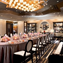 少人数での会食やパーティーの舞台となるのは、アットホームな時間を過ごすのにおすすめのバンケット『ルビー』。その名前の通り、宝石のように煌びやかでエレガントな雰囲気が漂います。洗練された空間でゲストとの歓談を楽しめます。