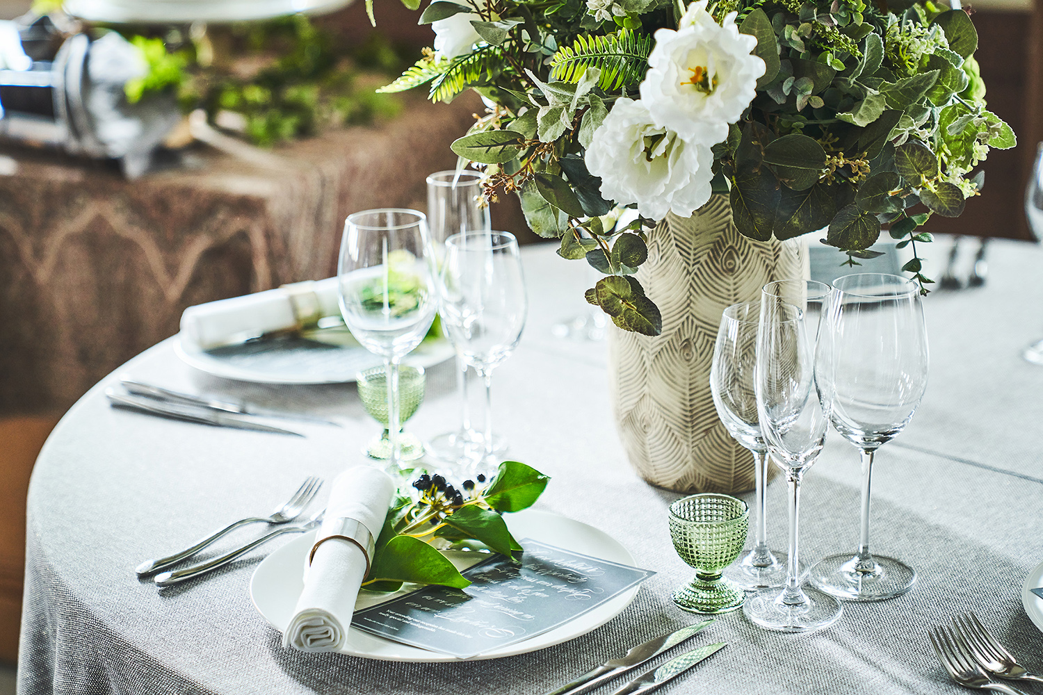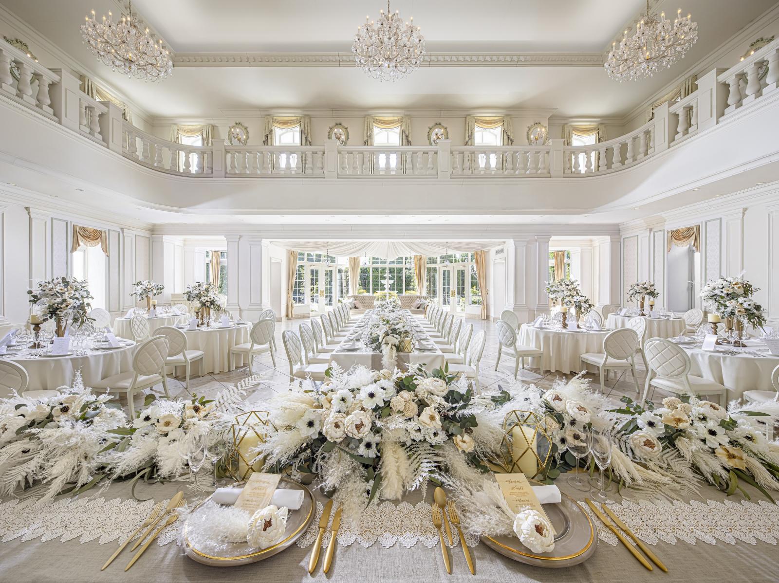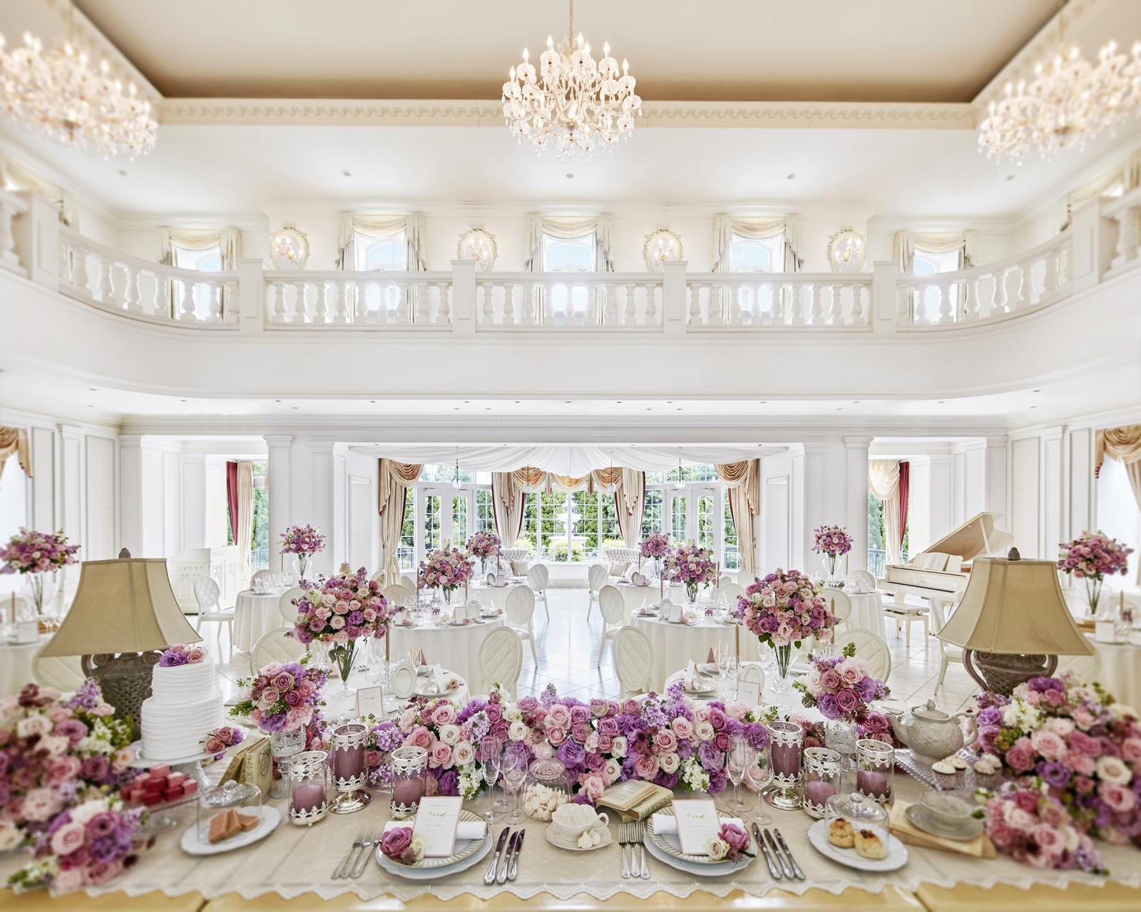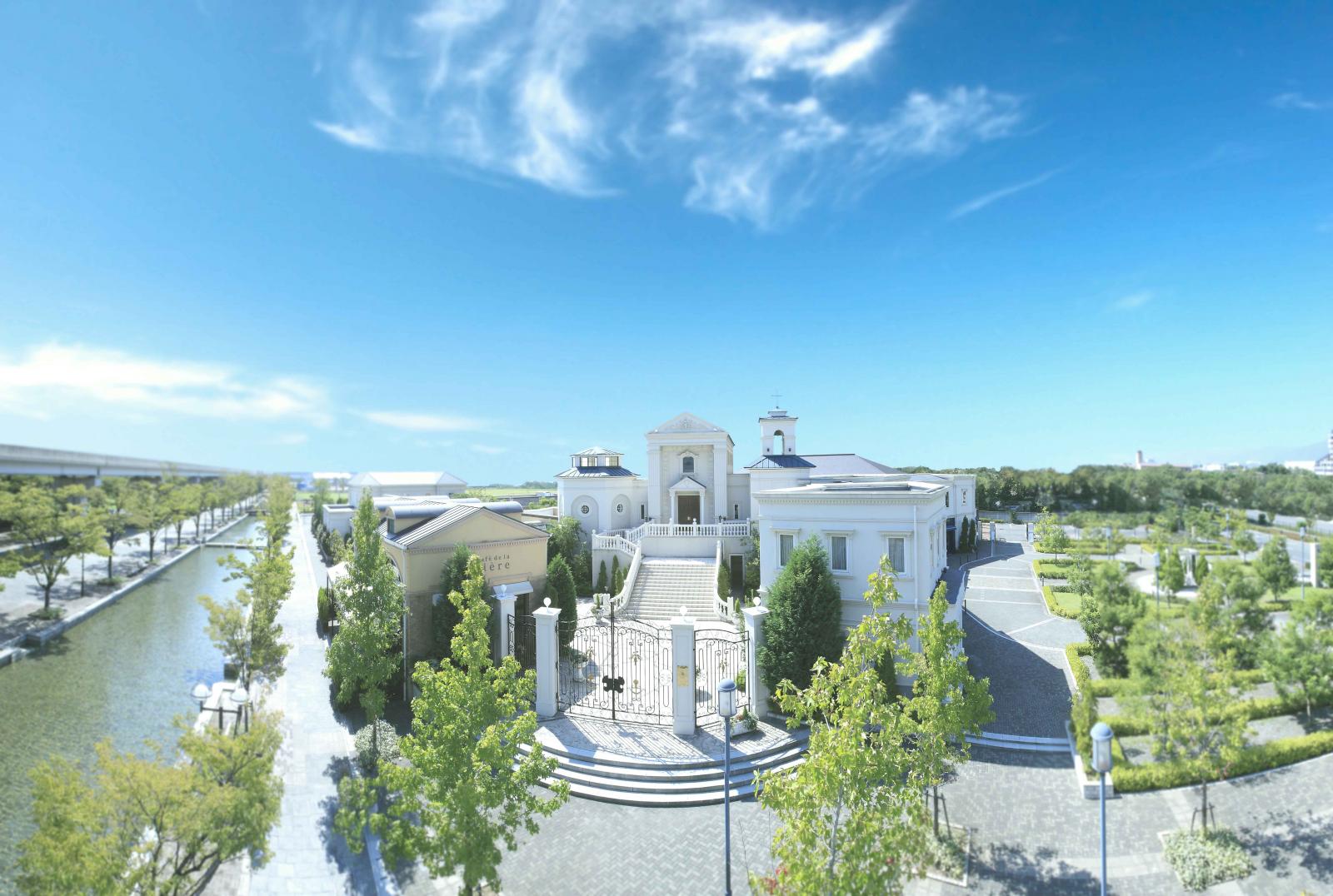 広大な敷地内には、白亜の大聖堂や緑あふれる独立型チャペル、ガーデンを備えた2つの邸宅と少人数専用会場が。リゾートのような空間が特別な1日を彩ります。