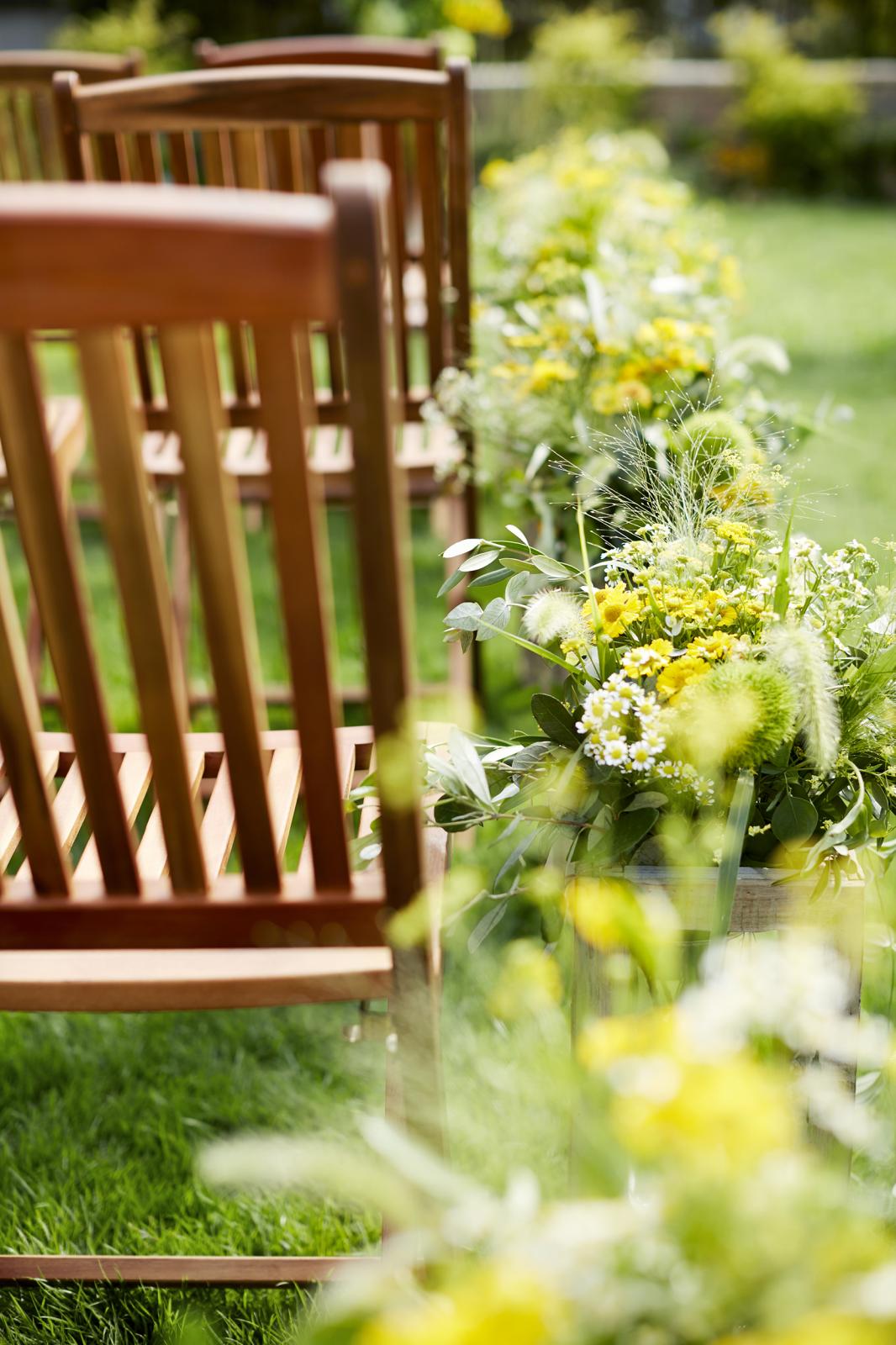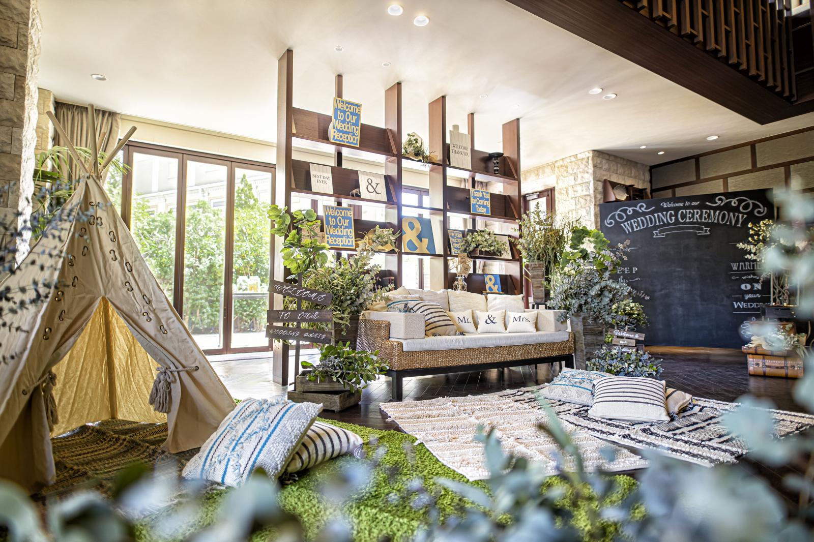 ナチュラルな雰囲気のチャペルにはガーデンを備え、フォトブースを設けたり様々な演出が叶う。