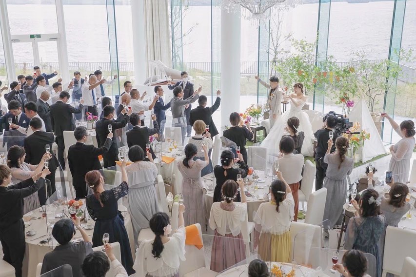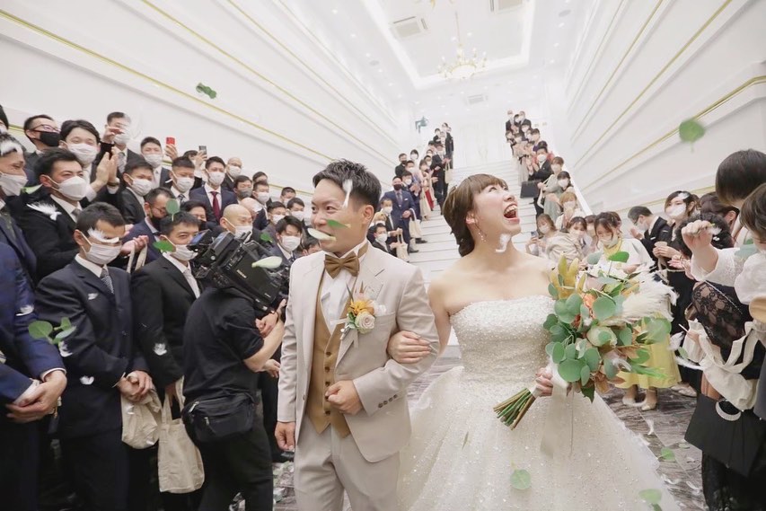 🥂 退場する前に、、 『ワンモアチアーズ』🥂 楽しく退場したくて official髭男dism/ミックスナッツ を流しながら結びました🌼 この時の氣持ちは 『わぁ…一瞬すぎた』 寂しい氣持ちとホッとした氣持ちでした 結婚式って一瞬ですよね🕊