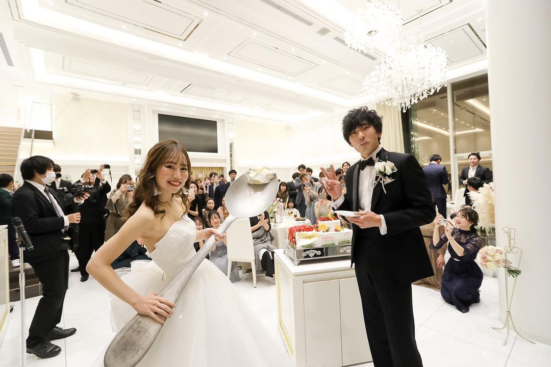 ファーストバイト🤍 私がスプーンを落とす演技をして ビックスプーンが登場🥄🤍 盛り上がる演出の1つでした
