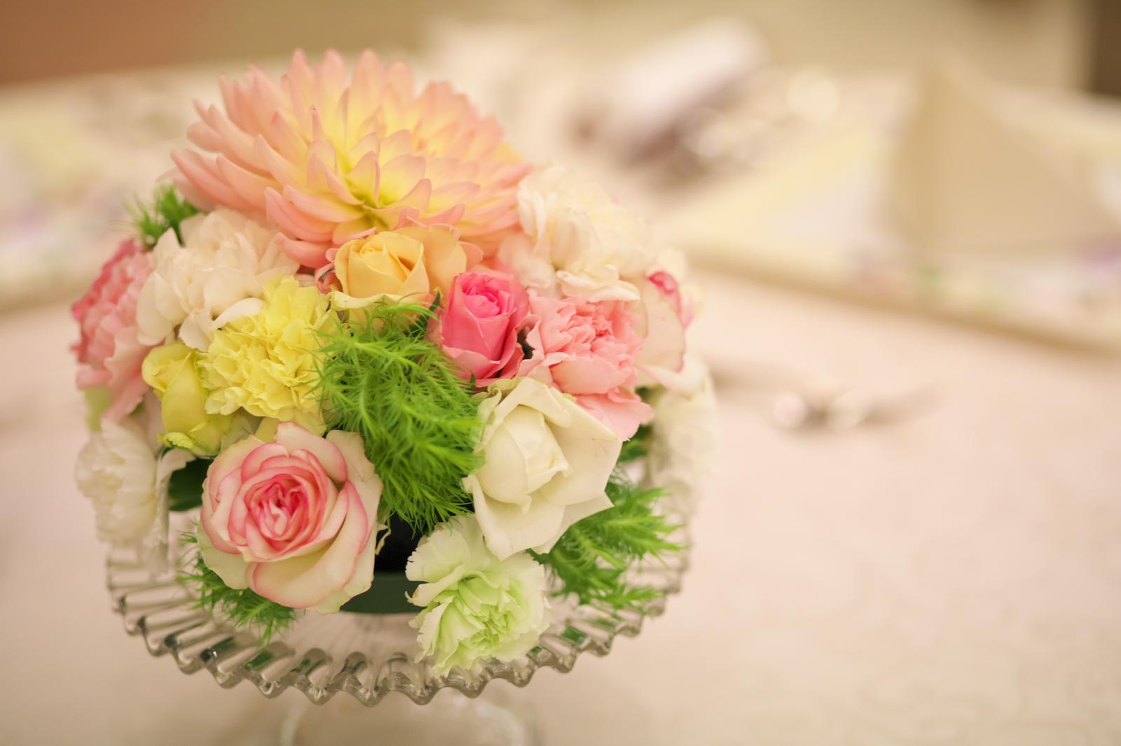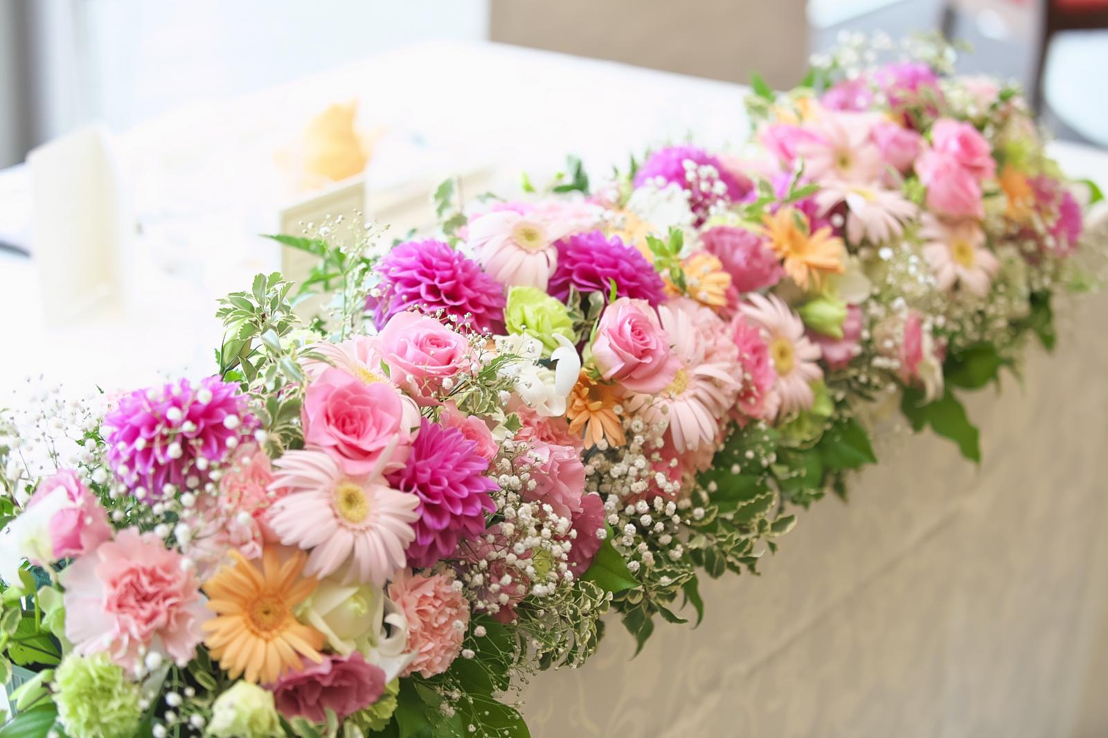 テーブル・ブーケなどの会場装花は結婚式のテーマが決まる大事なポイント。