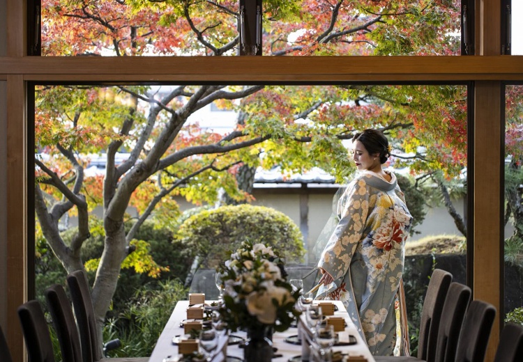 奥座敷を和モダンな空間に改装した少人数専用の会場。家族や親族との心温まるくつろぎのひとときが過ごせます。四季折々の自然を望む枯山水の庭園での記念撮影もおすすめです。