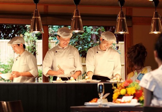 フレンドリーなスタッフが、ふたりの希望を丁寧に聴きながら、きめ細やかな心配りでサポートしてくれます。披露宴では、会場内に設置されたオープンキッチンで、シェフが目の前で調理してくれるので、ゲストにできたての料理を楽しんでもらえると好評です。