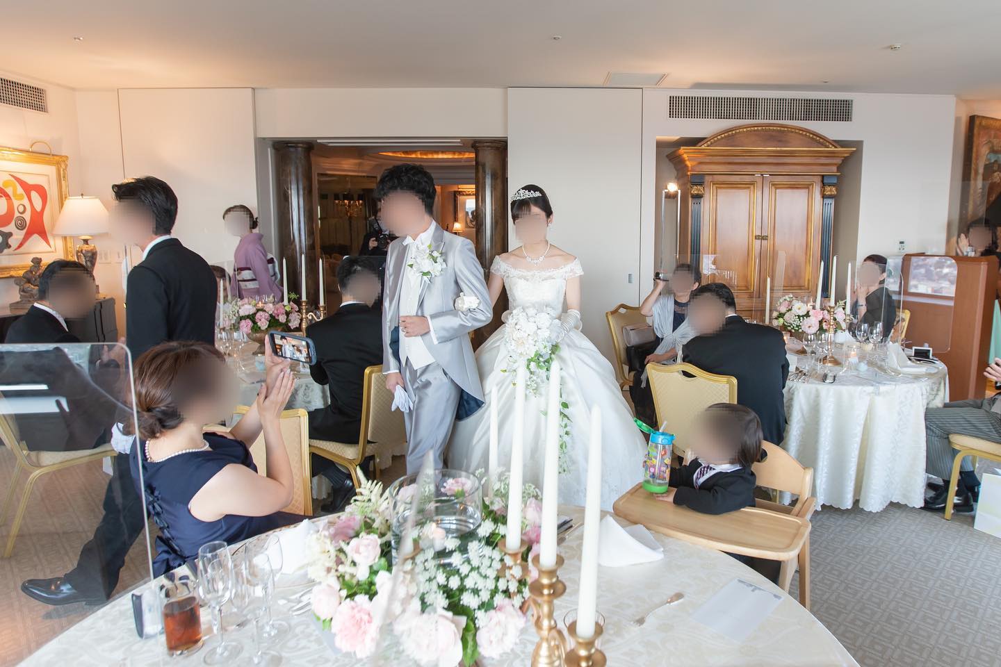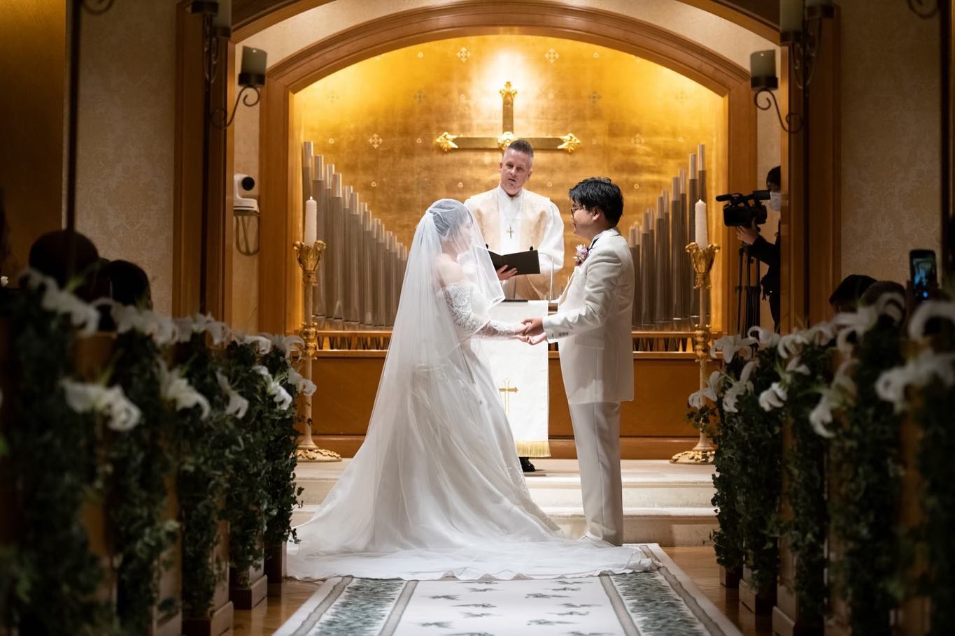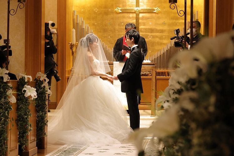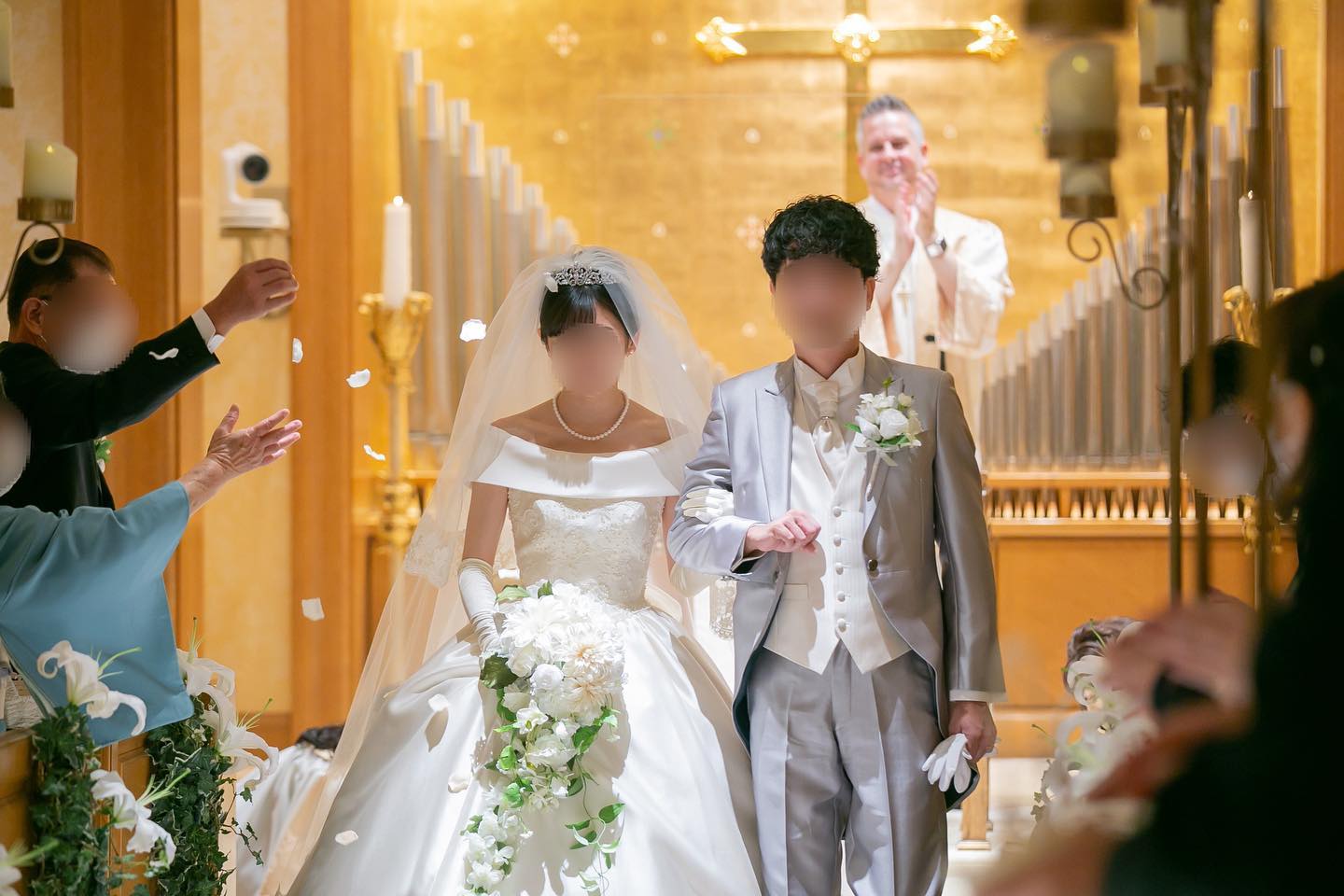 私たちの最終的な招待人数は92名となりました。 クラッシックチャペルは90名が着席できますが、コロナの感染対策として隣の方と間隔を空けていただくと74名までを推奨されています。 私たちは披露宴から招待するゲストが12名ほどおりましたので、80名が着席しています ぼかしちゃってますが、全列使用されつつも、全員余裕持って着席できたみたいで安心してます😮💨💕
