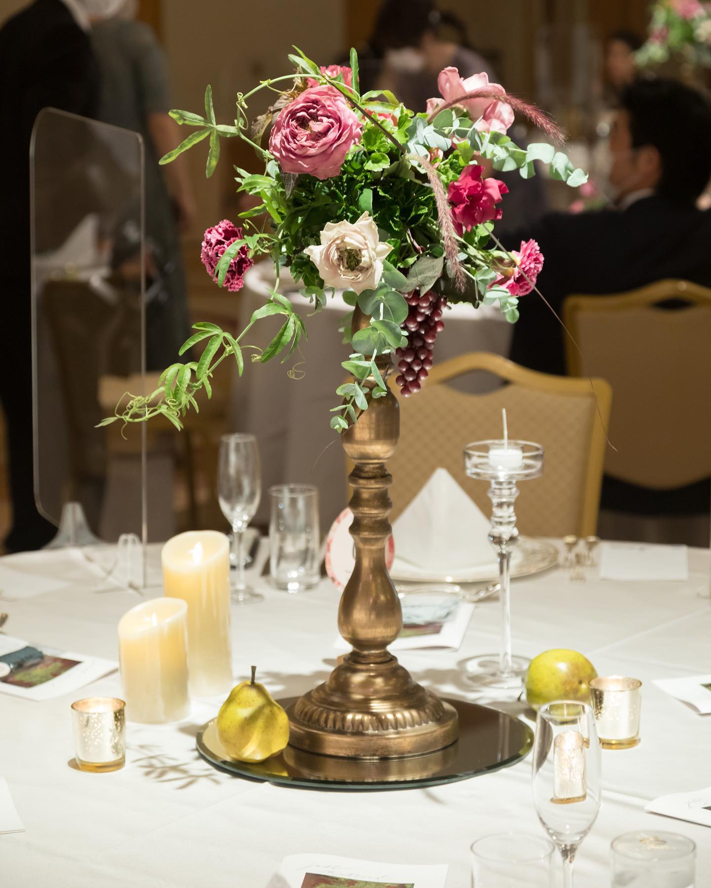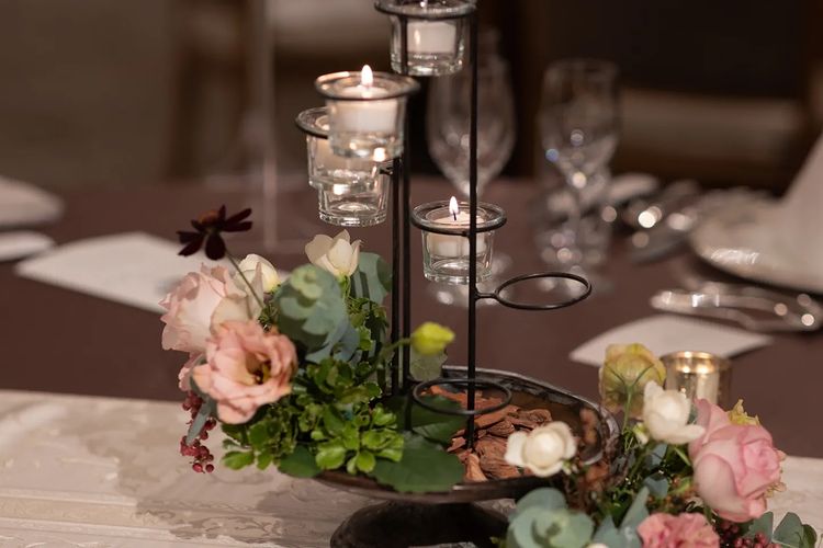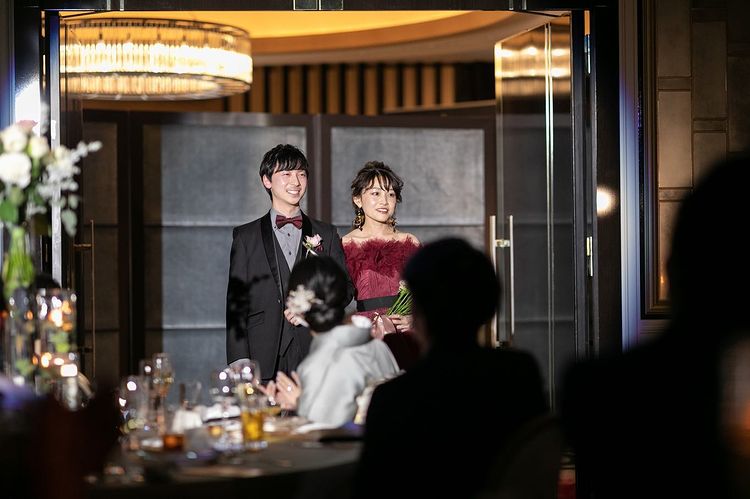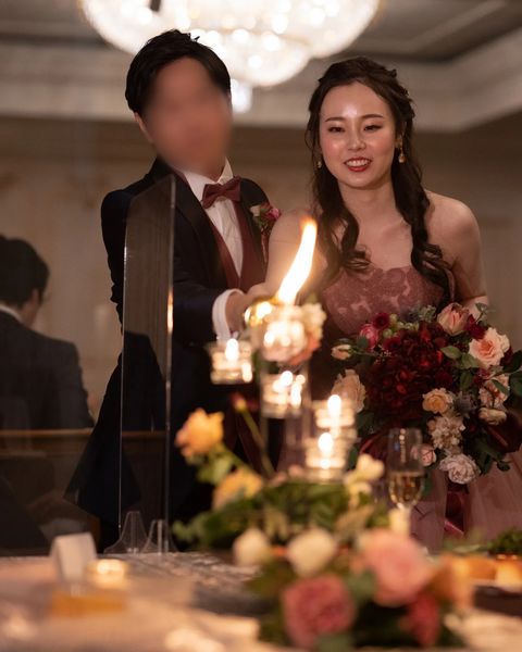 ここでご紹介している内容は結婚式当時のものです。現在は変更されたもの(設備や装飾など)や対応できないもの(料理、演出など)がございますので、ご留意ください。
