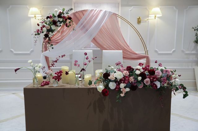 高砂のお花はダークな色味で アシンメトリーに!!と🖤 もう想像通りですんばらしい👏 WDにもCDにも映えてくれる高砂になりました🌹