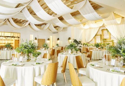 『GRAND DINING』は、自然光がたっぷりと降り注ぐ明るい会場。スウィートな雰囲気やナチュラルな雰囲気など、ふたりの好みに合わせて美しくコーディネートすることができます。