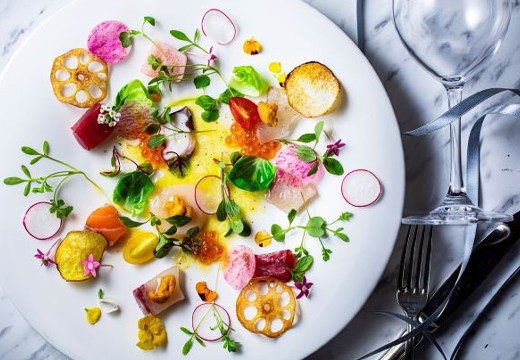 婚礼料理のコンセプトは「どの世代からも愛される料理」。料理長のセンスが光る、和の要素を盛り込んだ創作フレンチを提案しています。料理内容はカップルごとにアレンジすることも可能。ふたりのリクエストに対応したオリジナル料理はゲストにも好評です。