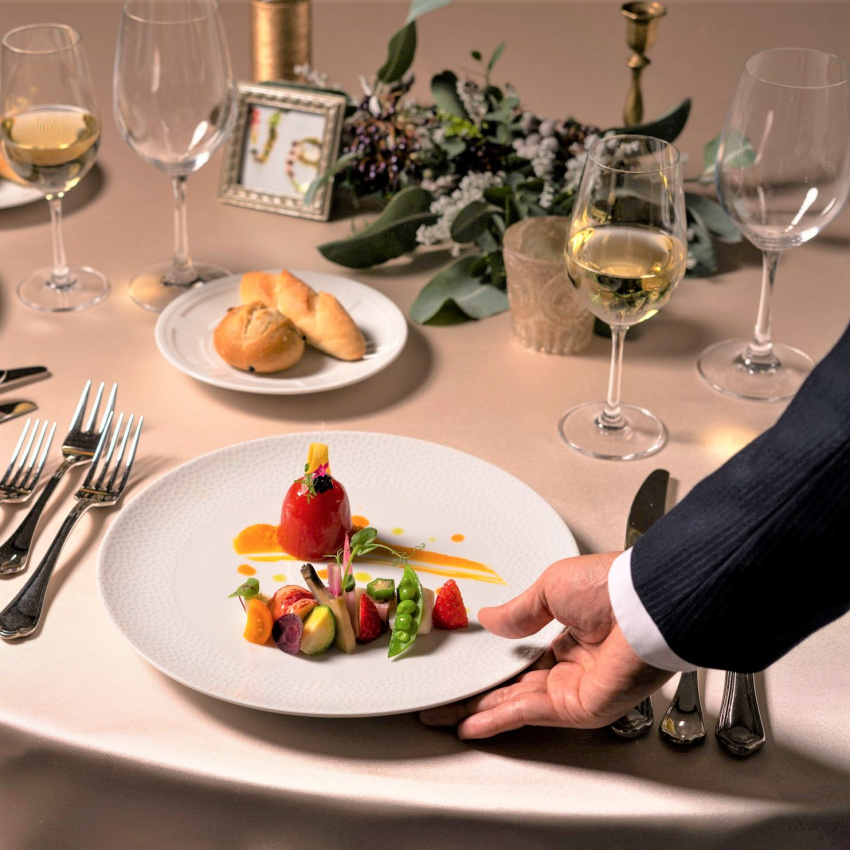 料理口コミ4.6の高評価。フルコース試食なので料理重視の方必見!独立型チャペル、神前式場、ガーデン付やワンフロア貸切の披露宴会場も見学可能。時期に合わせた最大80万円優待や宿泊等魅力的な成約特典付☆
