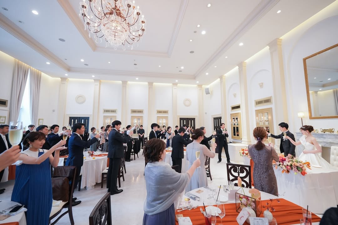 𓉞 乾杯 welcomeスピーチ、乾杯をあわせて 旦那が挨拶をしました (お互い上司を呼んでいないため) カンペ無しでやりきってくれたので一安心🤍😌 飲んだのかも味も正直何も覚えてないなあ🤣🥂 私たち越しのゲストでの グラスカチーンも撮って貰えばよかったなあ