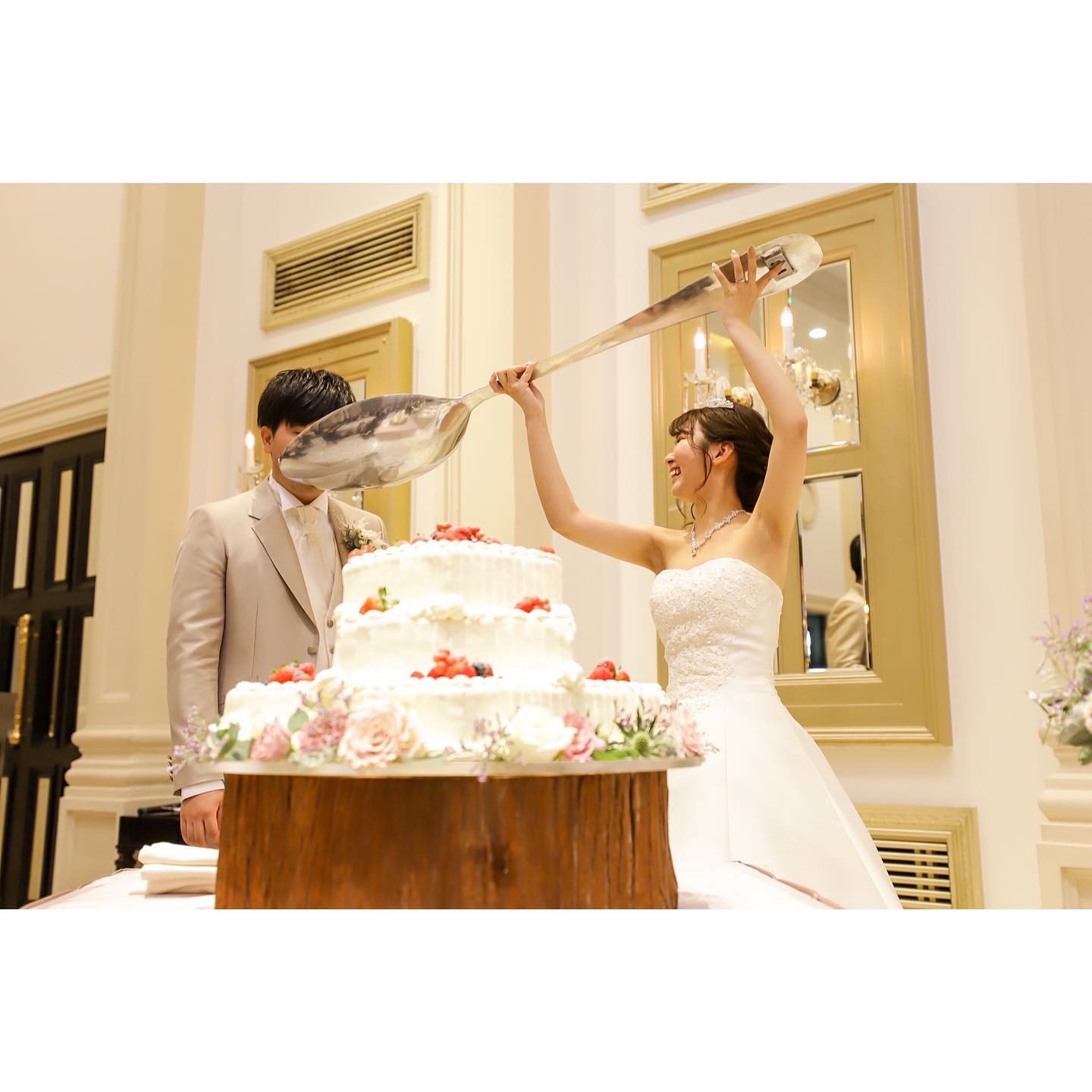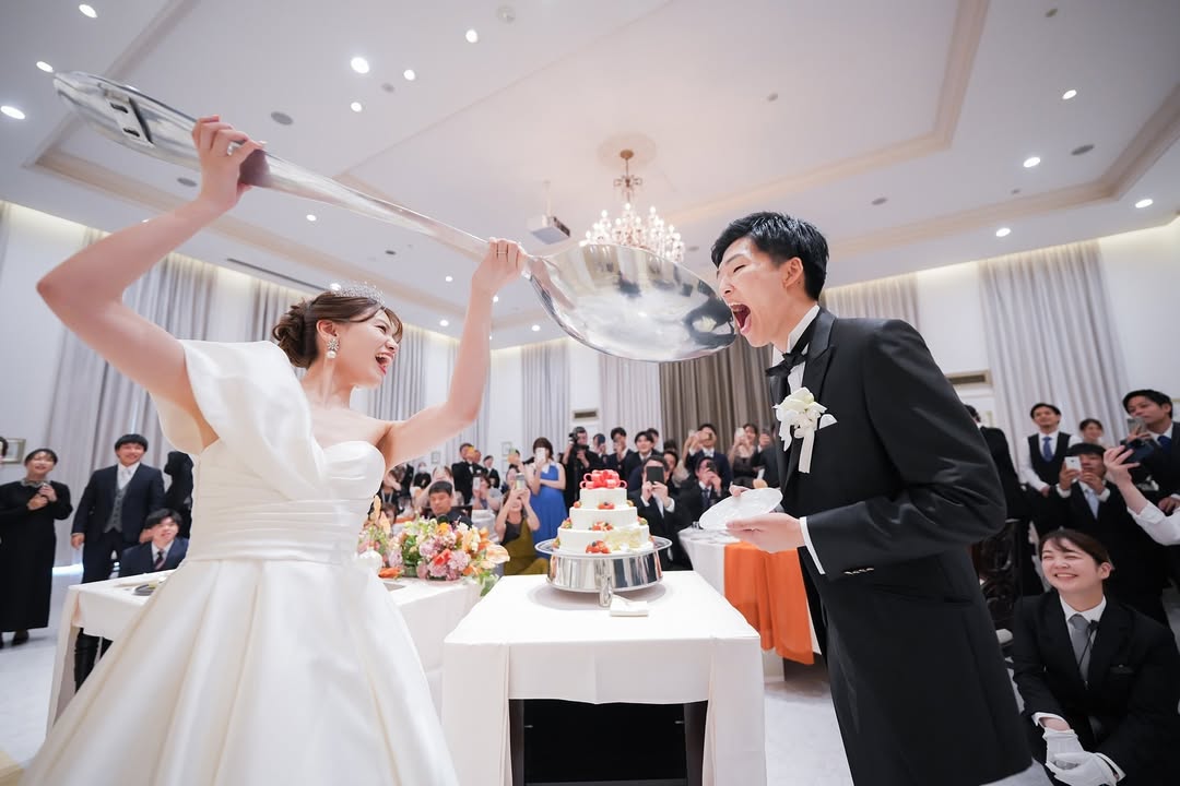 𓉞 ケーキ入刀 きっとこんなに人にカメラを向けられるのも 人生最後やと思います 📷 ˎˊ˗ (笑) 🎶I Really Like You / Carly Rae Jepsen のサビで入刀のお願いをしてたので サビまではカメラの準備を〜 と 打ち合わせで聞かれていたお互いの好きな所を 司会者さんが アナウンスしてくれていました 🎤 打ち合わせの時は好きな所 夫がなんて言ったか聞いてなかったので ここで聞くつもりだったけど 全くこの時は聞いてなかって、 動画で見返して知りました🤞🏻(笑)