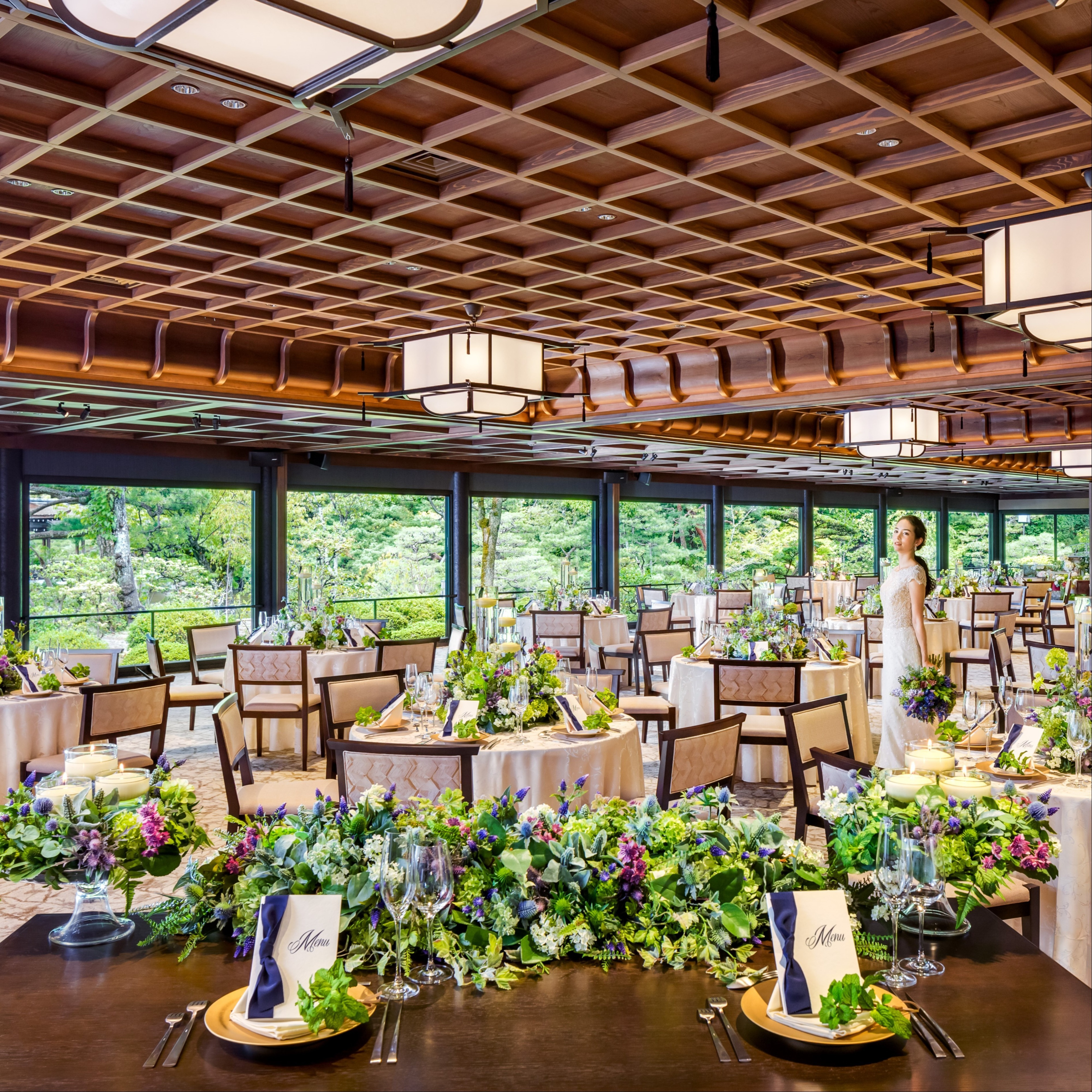 本フェア限定で、ご成約後にご参加いただける受賞歴多数のシェフ監修フルコース試食会2名分をプレゼント!1万坪庭園の美しい京の四季に祝福されるパーティで、大切なゲストへの感謝の気持ちが伝わる一日を。\お料理ランクアップなど最大55万円特典あり/