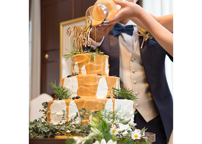 おふたりらしさをアピールできるアイテムなので、フルオーダーケーキで趣味やメッセージを形にしたり、新郎新婦様の手によりゲストの目の前で仕上げるなど、演出にも組み込めます。