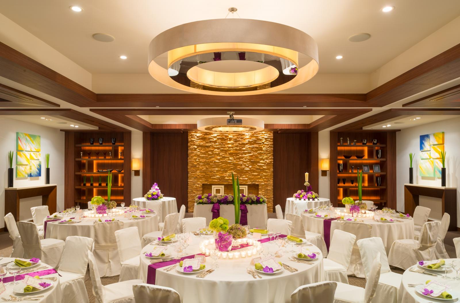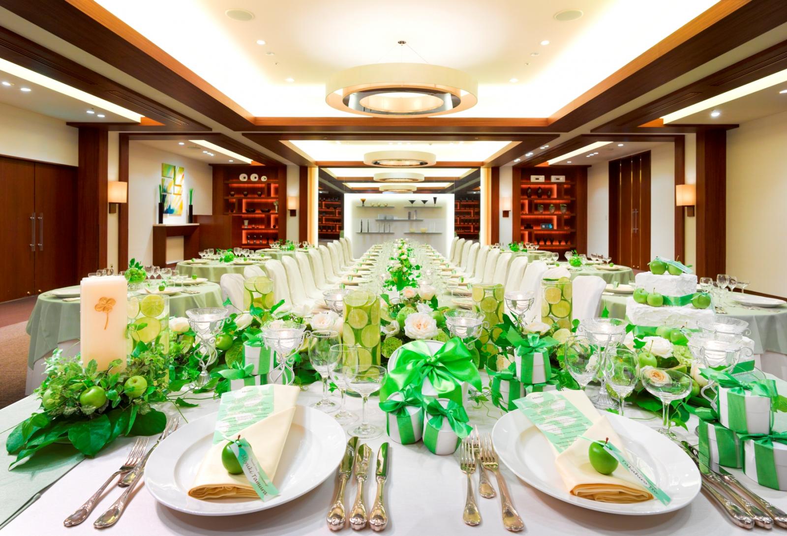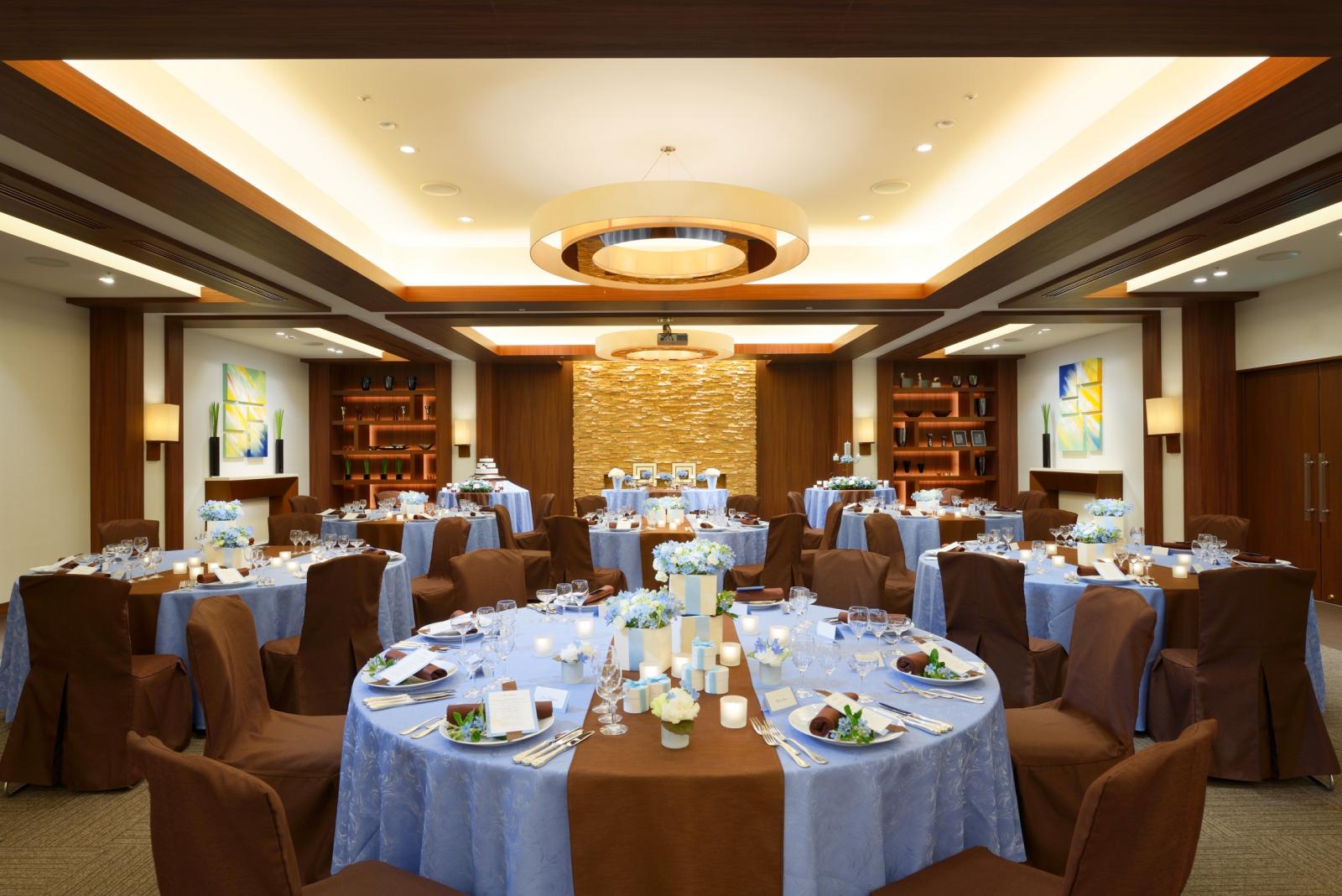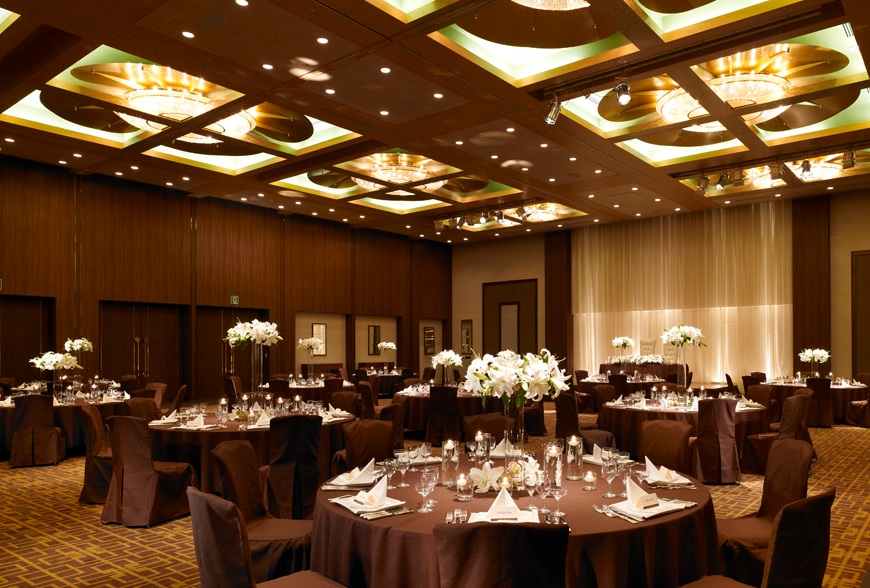 天井高7メートルの開放感溢れる空間と、美しく煌めくシャンデリアが印象的な「信濃」は、ホテルならではの優雅な時間を演出します。