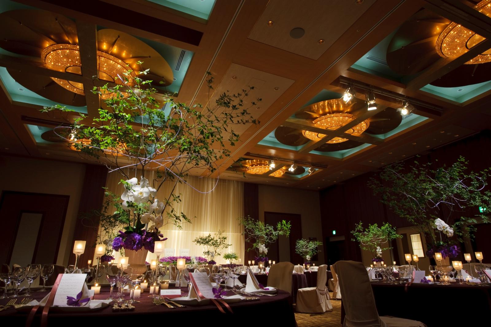大きなスクリーンを使用した迫力ある映像演出やダイナミックなフラワーアレンジメントも映える会場です。
