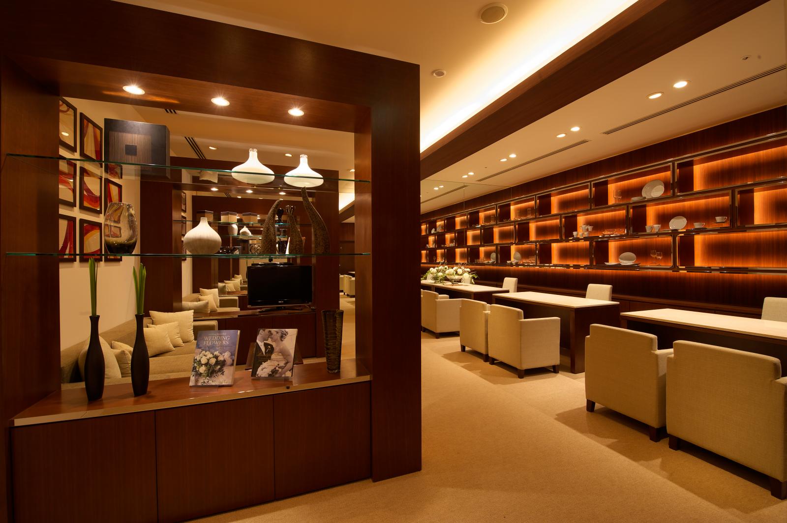 お洒落な調度品が並ぶブライダルサロンでおふたりのご希望やお打合せをさせて頂きます。