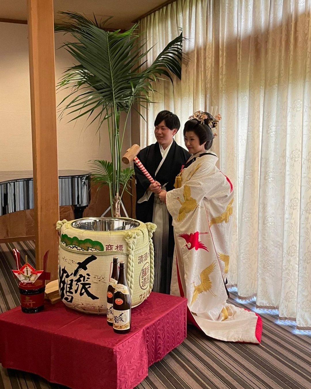 こだわり〜鏡開き〜 鏡開きをする上で 中身は村上の大好きなお酒🍶〆張鶴🍶でする事は決まっていた。 けど、誰かと被るのは、普通なのは嫌だなぁと。 元々は五十嵐邸ガーデンの【寿】と書いてある真っ赤な鏡開き用の樽でやる予定だった。 いろいろ調べて出てきた 角樽と菰樽を買いに村上の酒屋 酒のかどやさんへ思い付きで訪問。 そしたら、宮尾酒造に鏡開き用の樽があることを教えてもらって、いろいろ連絡も取ってもらって式当日貸し出し可能に✨ 五十嵐邸ガーデンの社長さん(プランナーさん)も鏡開き用の樽である事を説明したところ、式1ヶ月前くらいなのにも関わらず、快く持ち込みOKにして頂きました! そして、この迫力のある 〆張鶴の4斗樽と 脇を固める〆張雪の瓶と 角樽に入った月が映えてて 見返してもニンマリする! そして、BGMはサマーウォーズのサントラ! 開けた瞬間に鳴らして貰うような演出に 想像するだけで鳥肌立ってた̗̀( ˶'ᵕ'˶) いつ飲んでも美味しくて、乾杯のお酒一気飲みしてたらしいです(笑) 後悔する点は、なかなか鏡開き割れなかった事😂鏡開きの方法を研究して、もっとスッと開けられればよかったなぁ💦笑