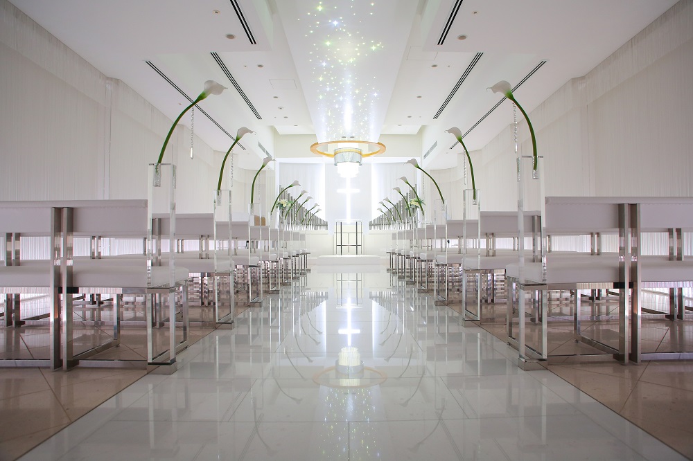 神殿・チャペル・写真スタジオ等がワンフロアに集約しているため、
