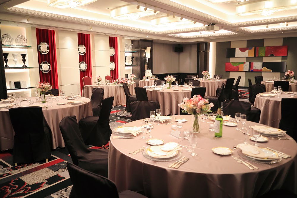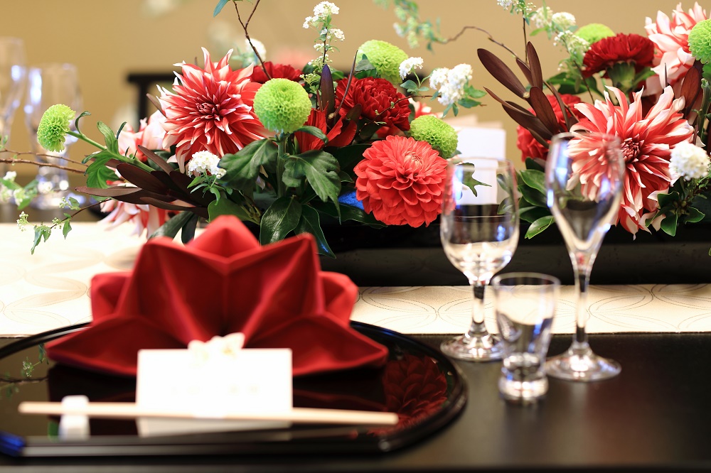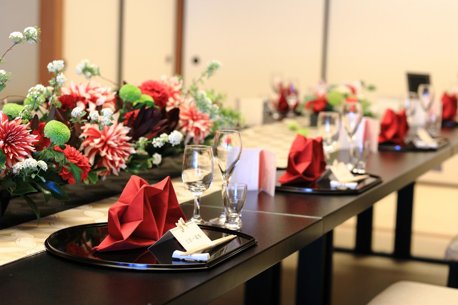 白・赤・黒を基調としたバンケット。