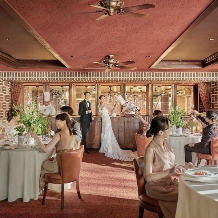 レンガ造りの空間に選りすぐりのインテリアが配された会場は、少人数のパーティーにぴったり。陽光が差し込みアットホームな雰囲気です。オープンキッチンやルーレットバーなど、ふたりらしいおもてなしが叶う設備も充実しています。