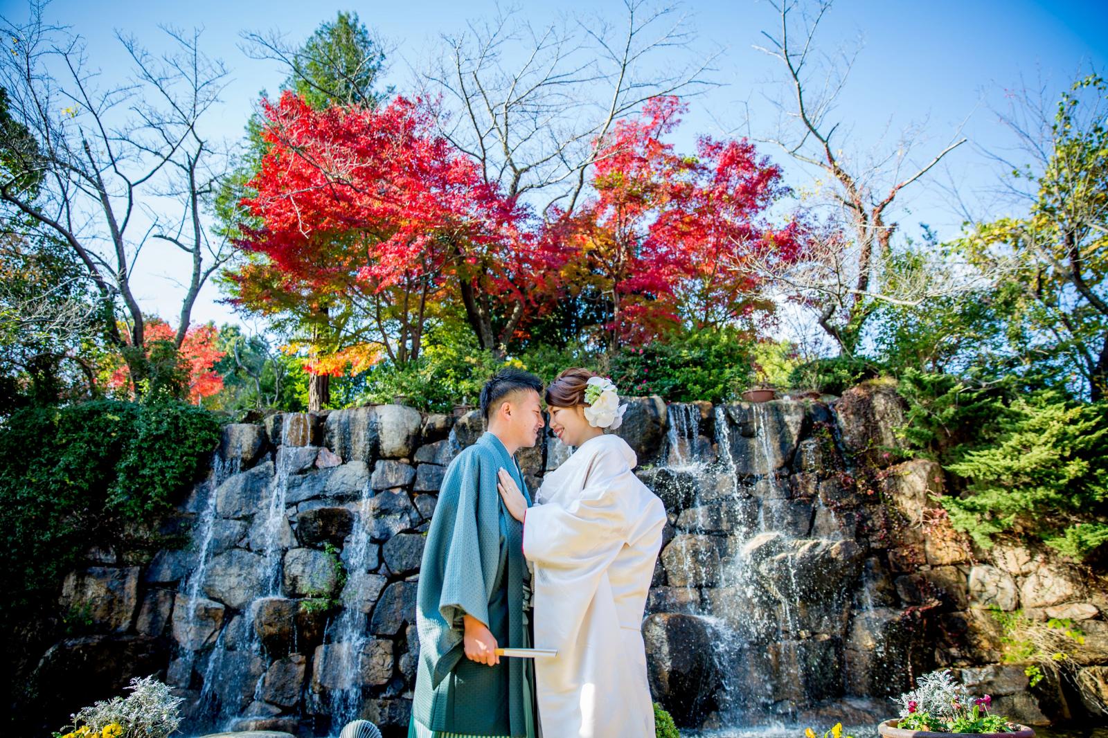 温かい日差しと滝の流れる水の音に包まれておふたりの誓いをお伝えください