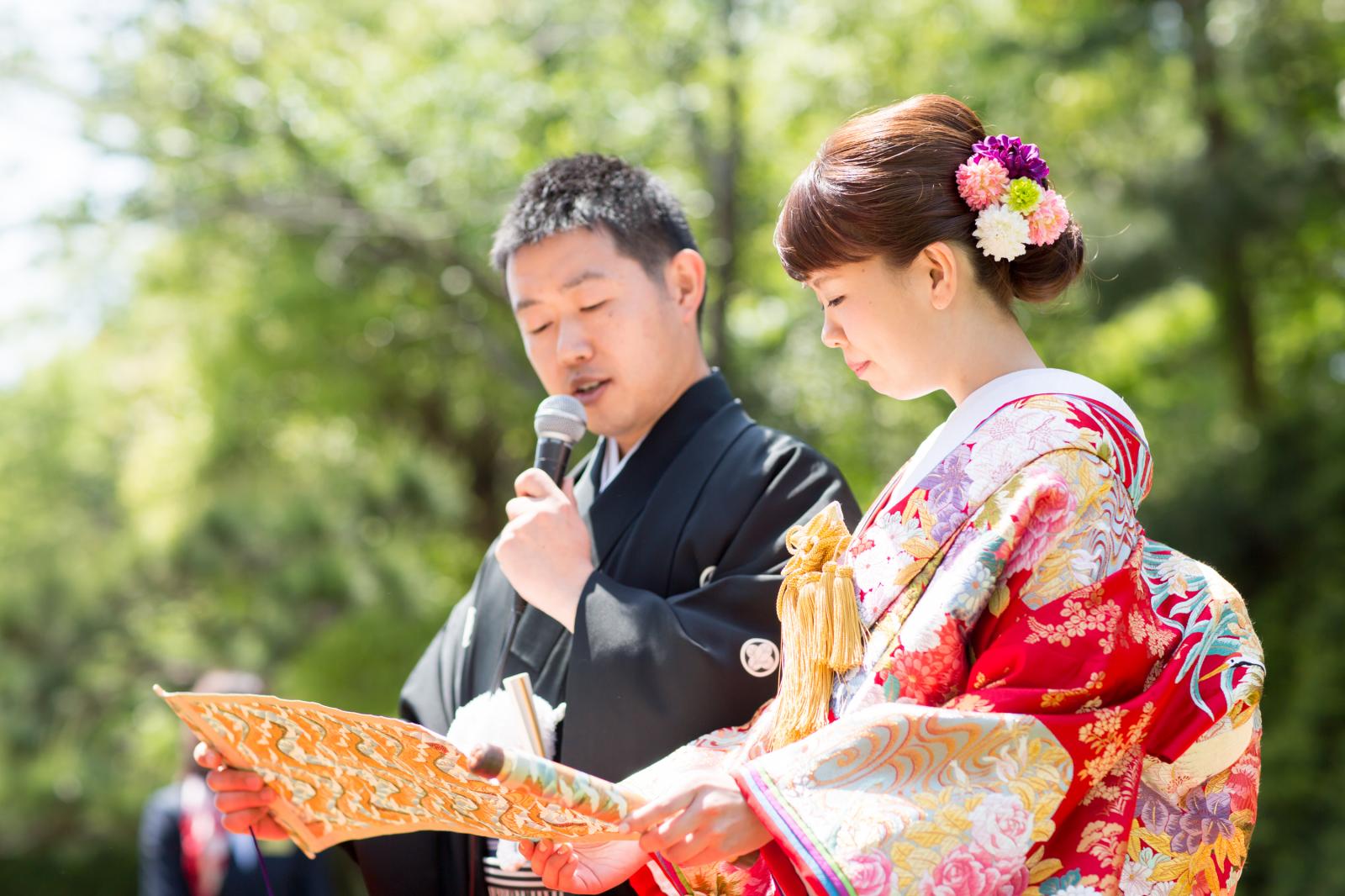ガーデン人前式では洋装・和装どちらでも挙行していただけます。