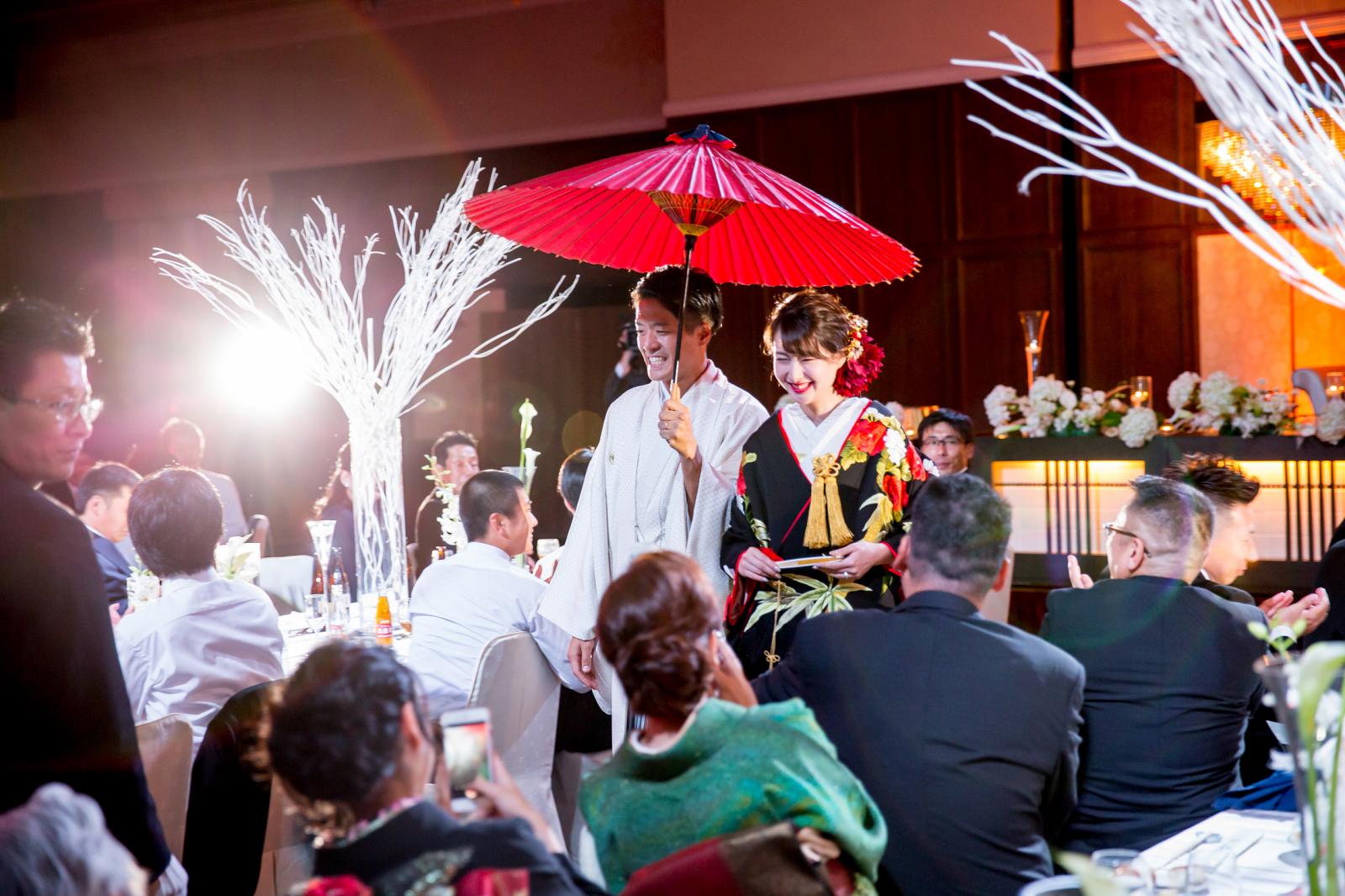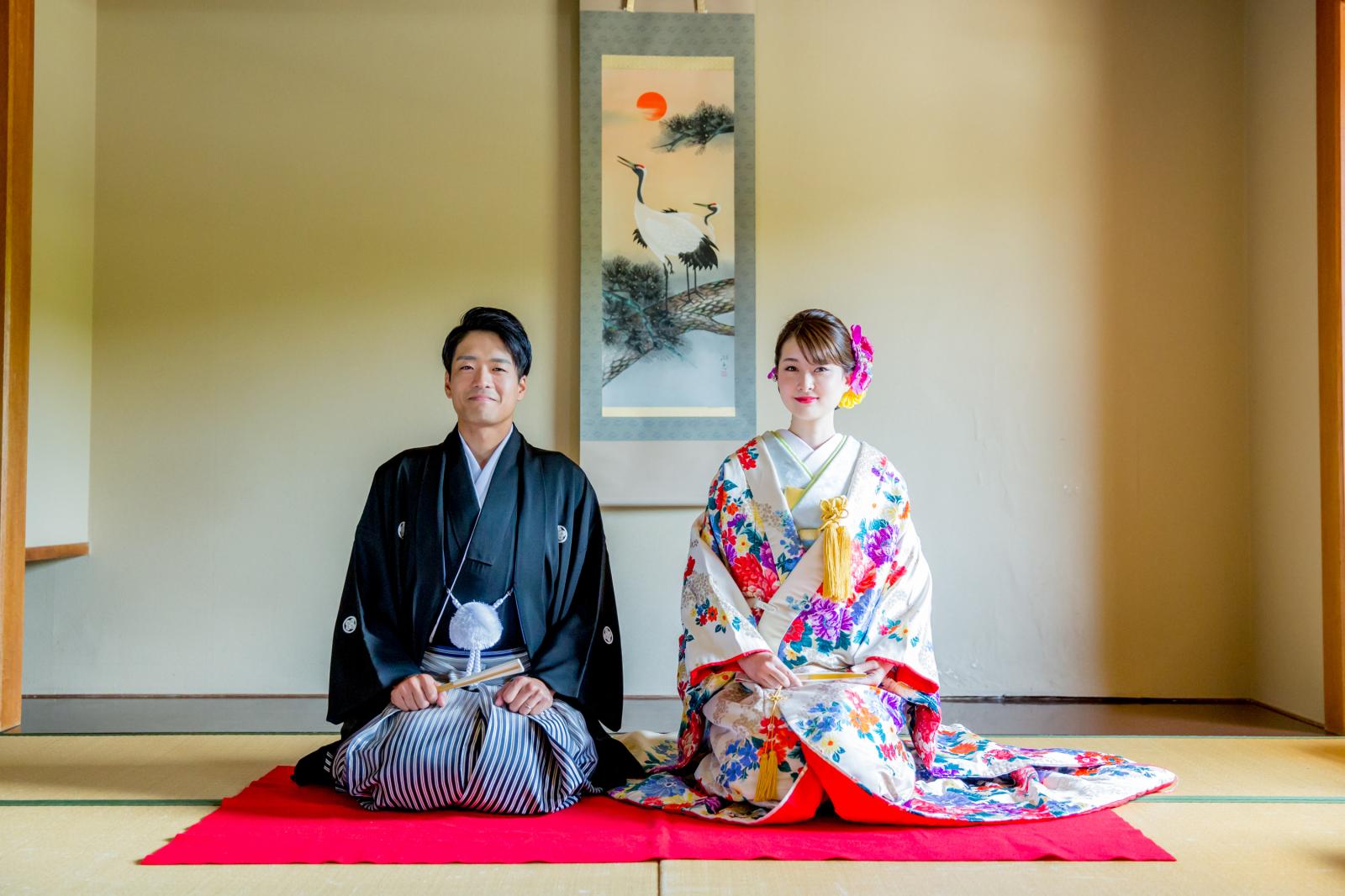 神前式や人前式での和装はもちろん、お色直しで和装をまとわれるとより一層華やかな雰囲気に
