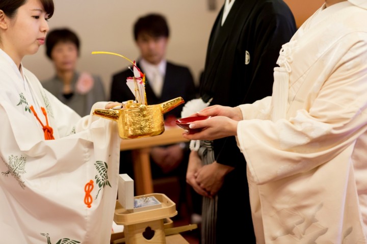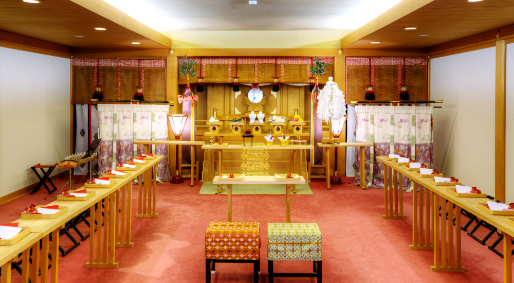 琴の音色とともに 本格的に神前式が叶う神殿