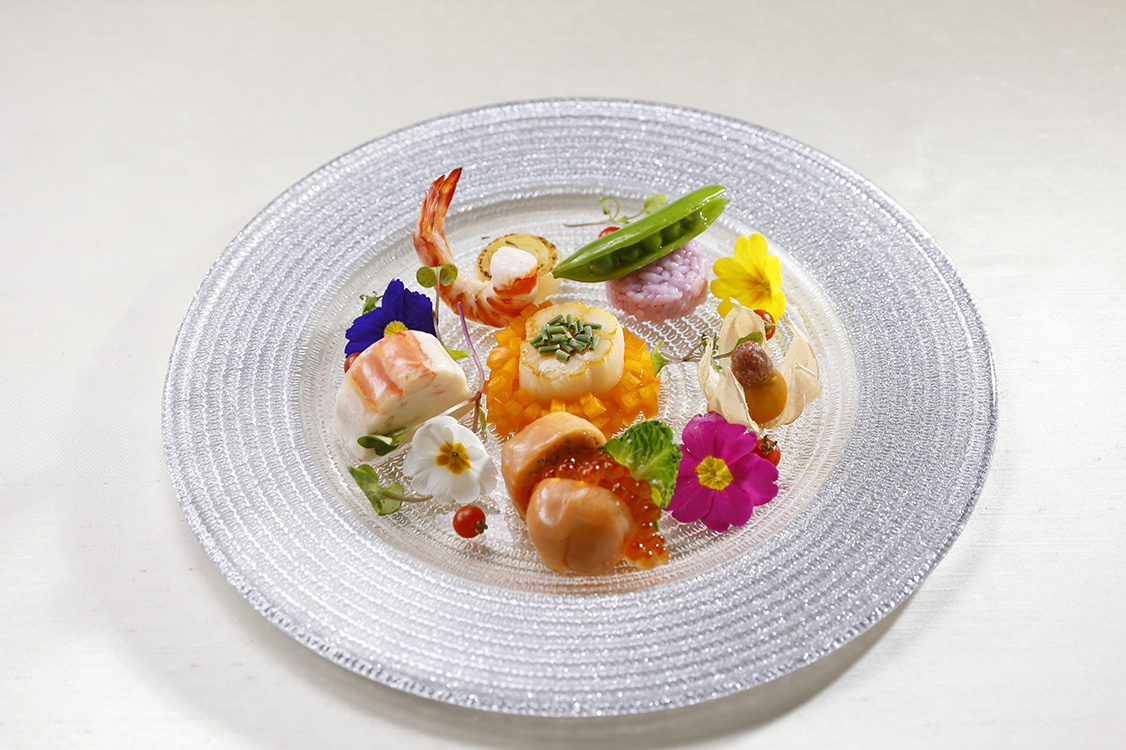 味だけでなく目でも楽しむことのできる盛り付けでゲストの方の記憶に残る婚礼料理を