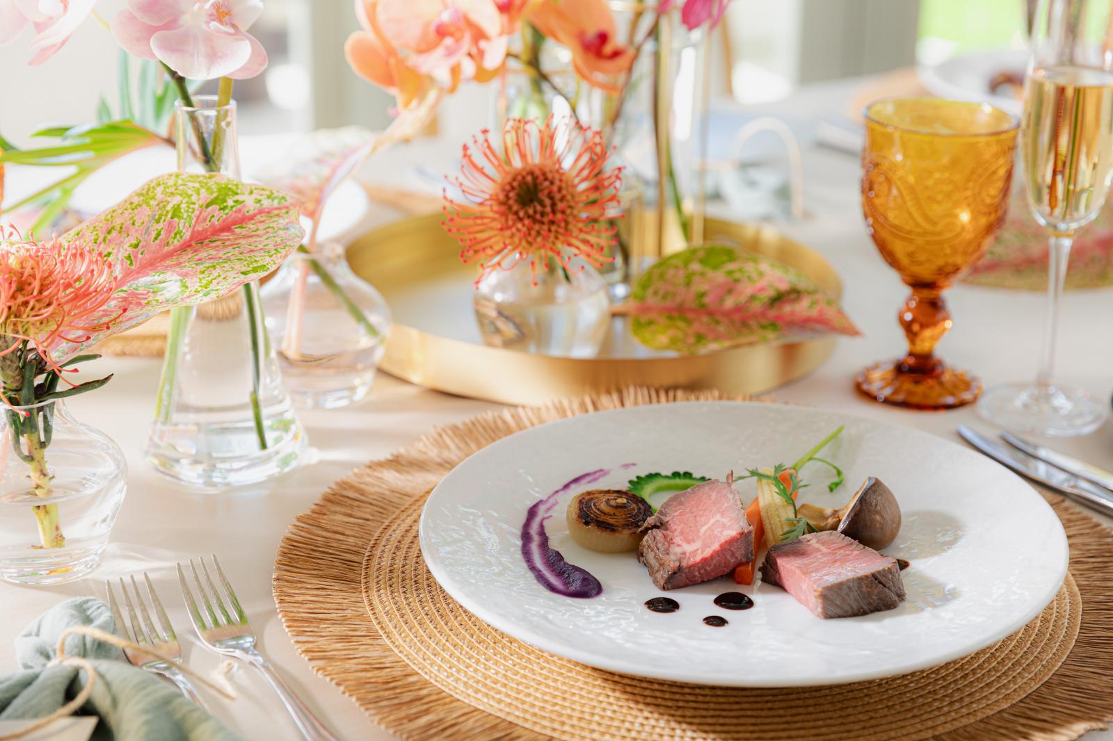 ご家族や親しい友人とのアットホームな会食にふさわしい、シェフが心を込めて創り上げる和風フレンチのコース。日本人の味覚に合わせて創られ全てお箸で召し上がれるので幅広い年齢層のゲストから好評です。
