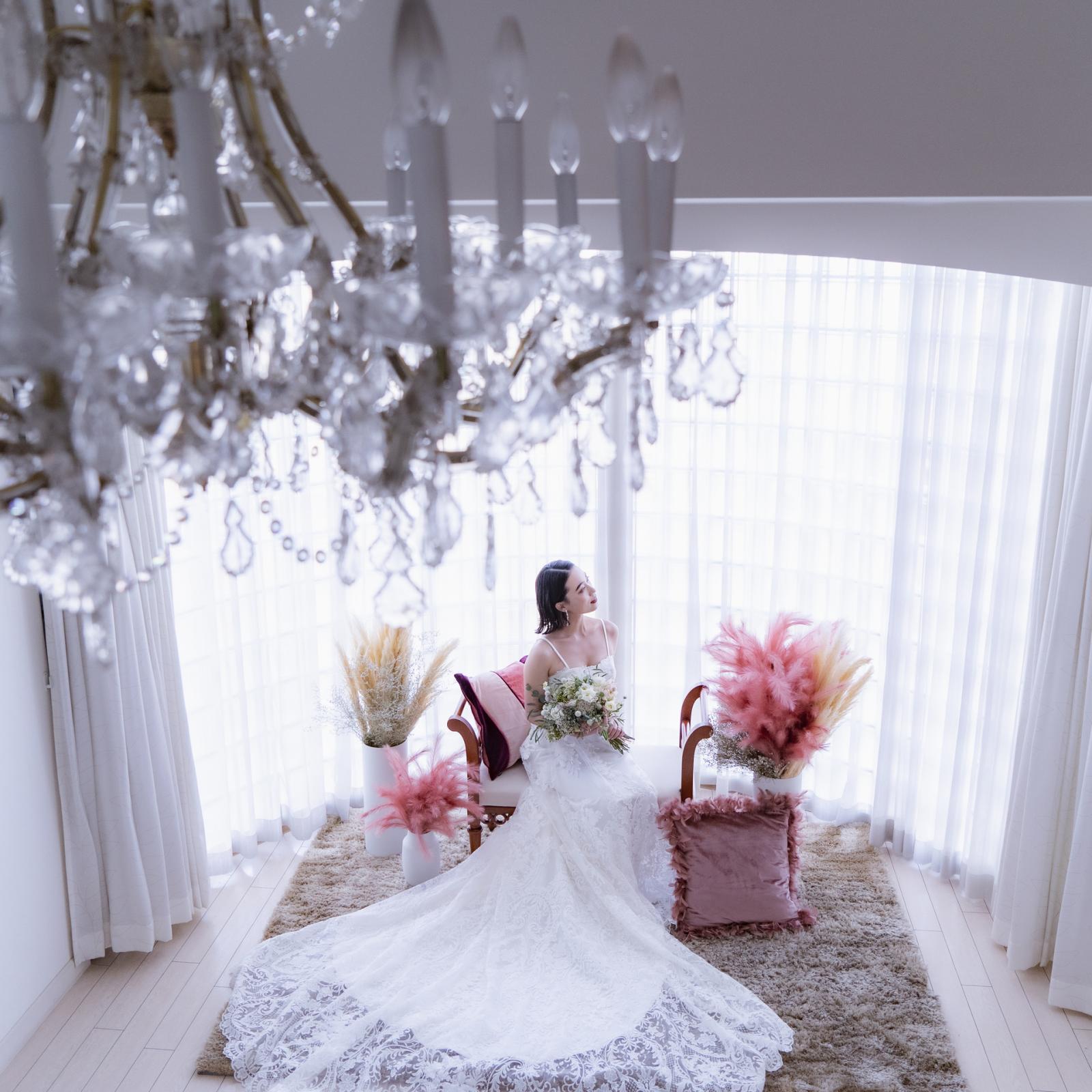 スワロフスキーのシャンデリアが醸し出す透明感がドレスをより一層素敵にさせます