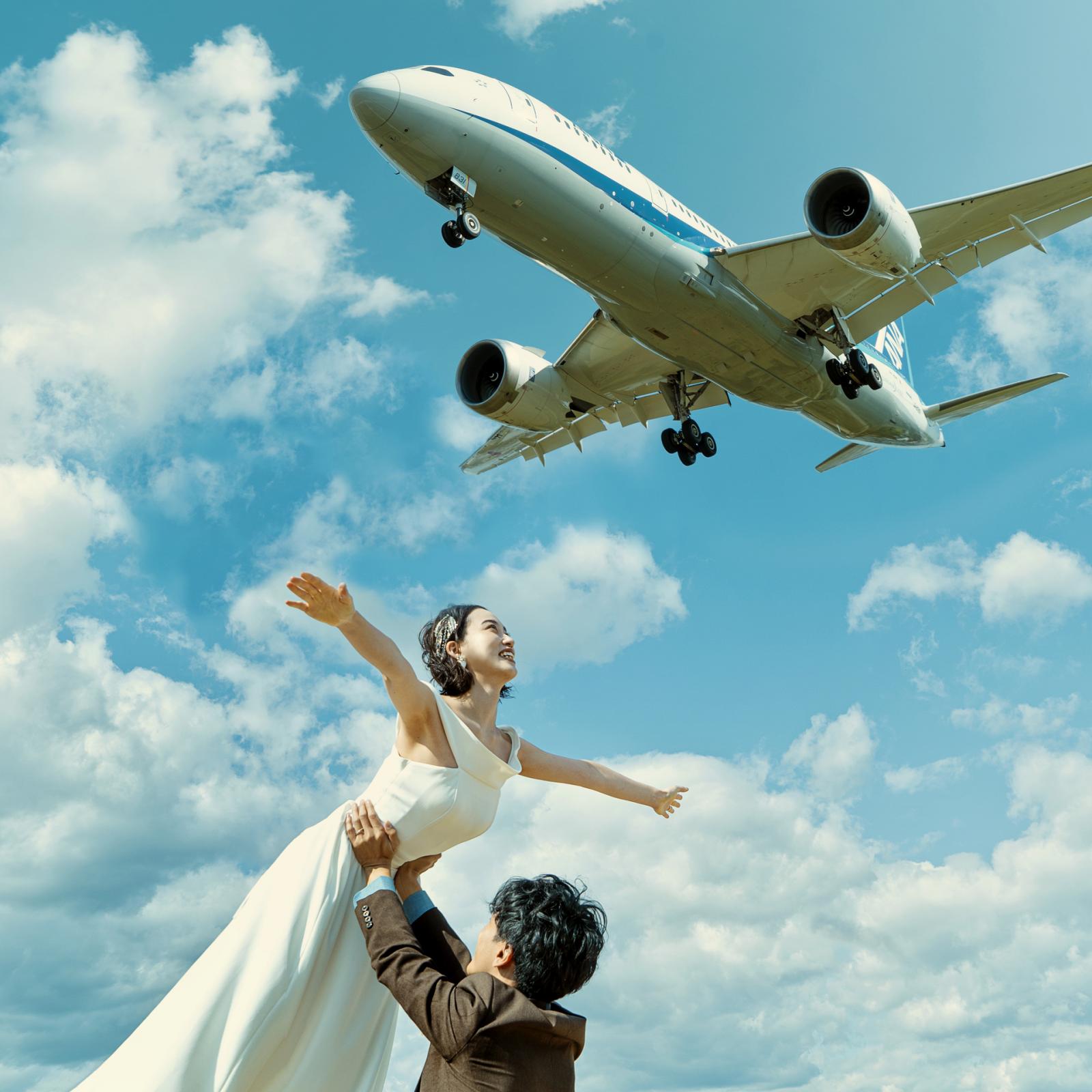 空港ならではの飛行機と一緒に撮影も可能☆