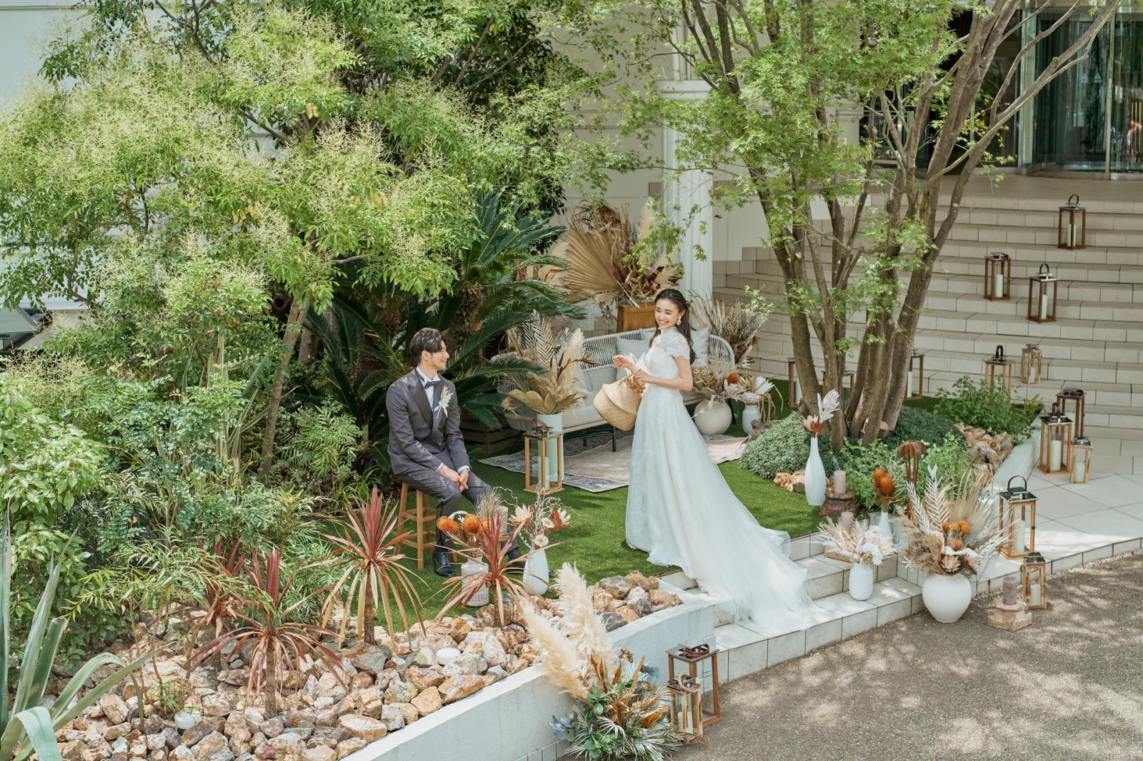 お2人やゲストの皆様をお出迎えするエントランスガーデンは、