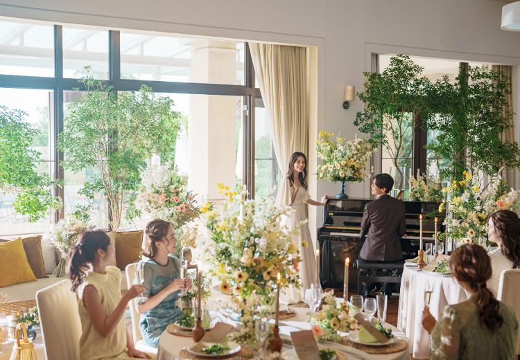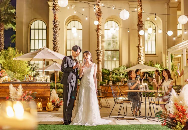 広々としたプライベートガーデンでは、デザートビュッフェや記念撮影などロケーションを活かした演出が人気。パーティーを夕刻からのスタートにすれば、美しいサンセットを眺めながら贅沢なひとときを過ごせます。また、ナイトパーティーも楽しめるのでロマンティックな雰囲気を味わいたいふたりにもおすすめです。